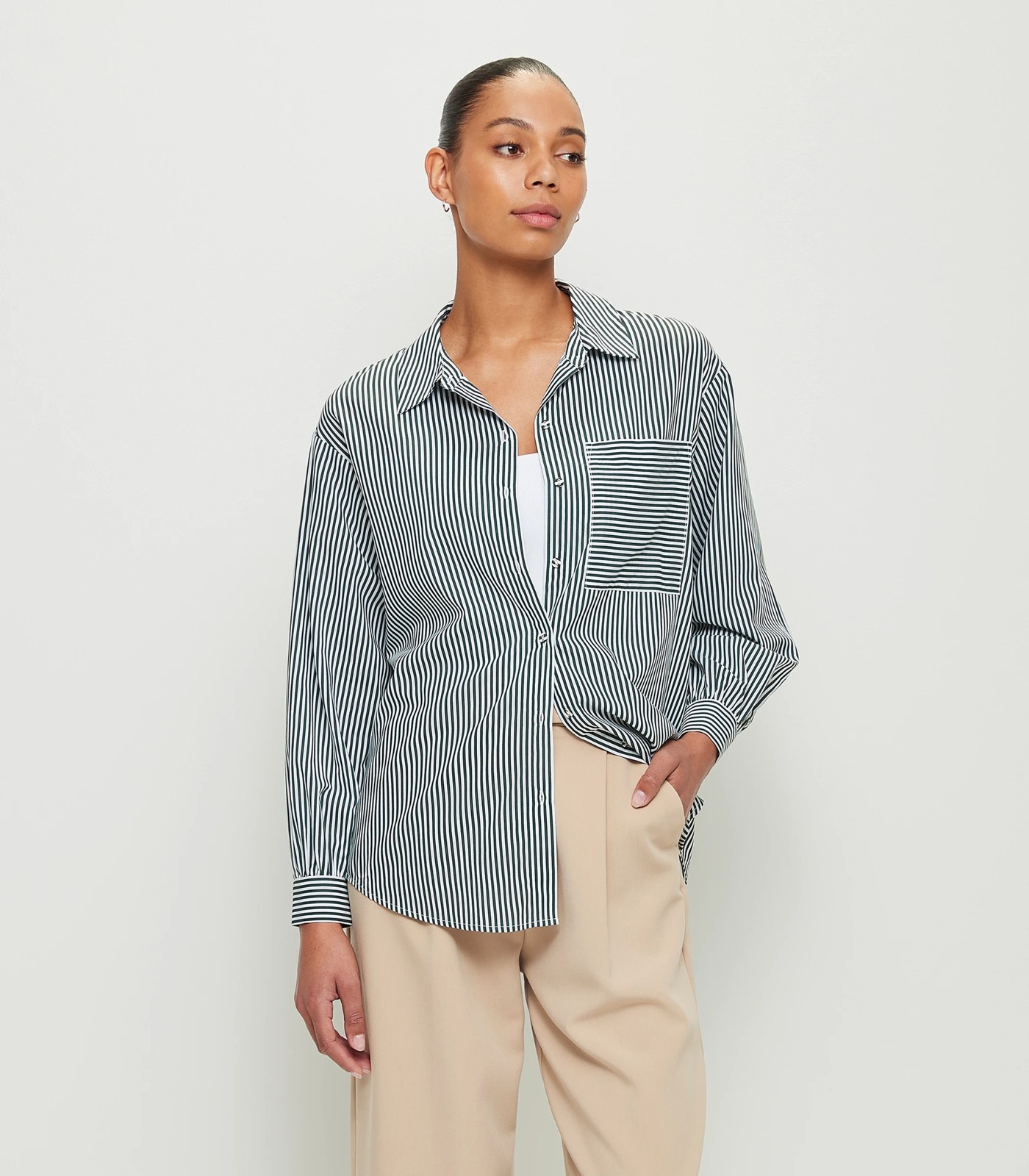 Look smart around the town in our Preview button through oversized shirt. Pair with work pants and a blazer for classic styling for the office or your favourite jeans and heels this season, it has a round collared neckline, long sleeves and a button through front for easy pull on.