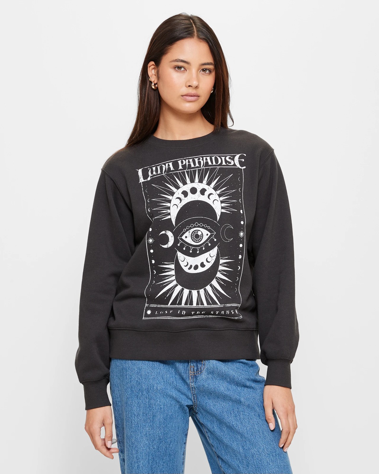 Bold chest print with wording LUNA PARADISE LOST IN THE STARS
