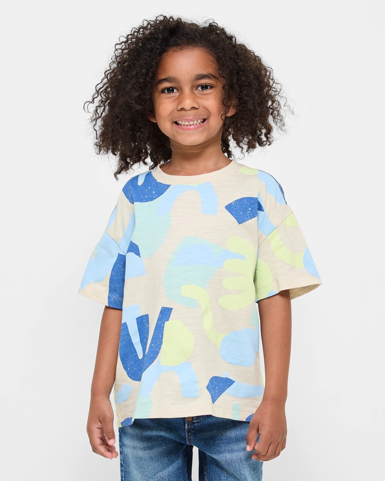 Dive into comfort and style with our Oversized Print T-shirt. Perfect for boys who love a relaxed fit, this tee features a playful all-over shapes print that adds a fun twist to any outfit. With its crew neck and short sleeves, it's perfect for everyday wear, whether playing in the park or chilling at home. Don't miss out on this wardrobe essential – grab yours today and let the adventures begin!