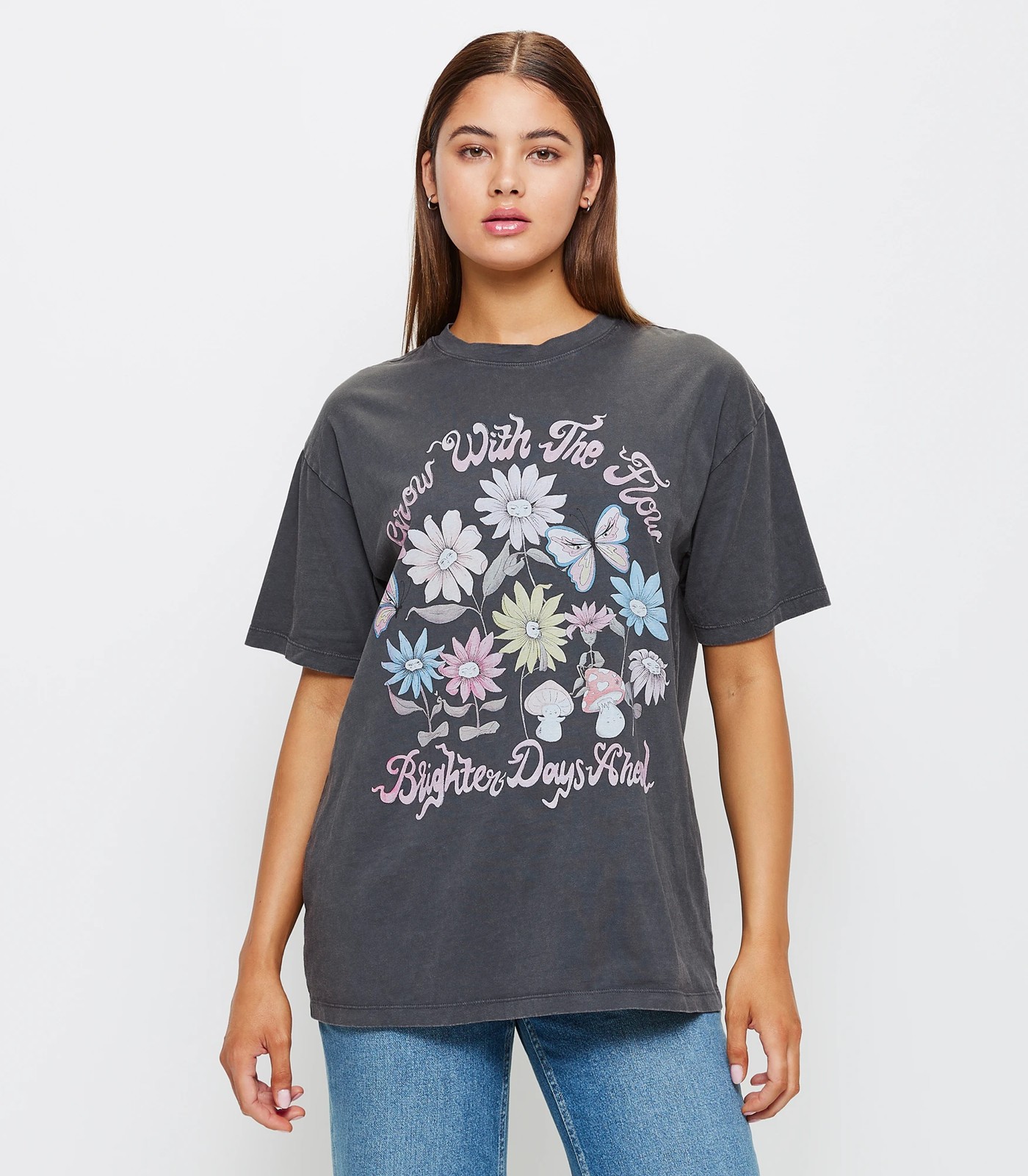 • Bold front print with wording GROW WITH THE FLOW BRIGHTER DAYS AHEAD