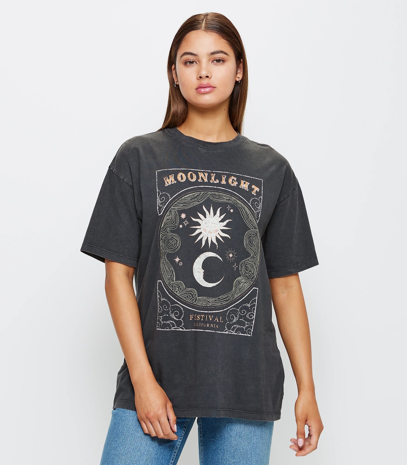 • Bold front print with wording MOONLIGHT FESTIVAL CALIFORNIA