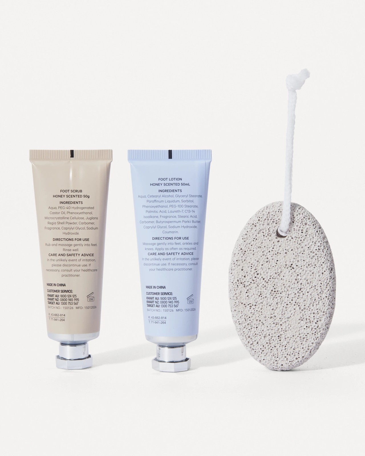 - Foot Scrub: Aqua, PEG-40 Hydrogenated Castor Oil, Phenoxyethanol, Microcrystalline Cellulose, Juglans Regia Shell Powder, Carbomer, Fragrance, Caprylyl Glycol, Sodium Hydroxide