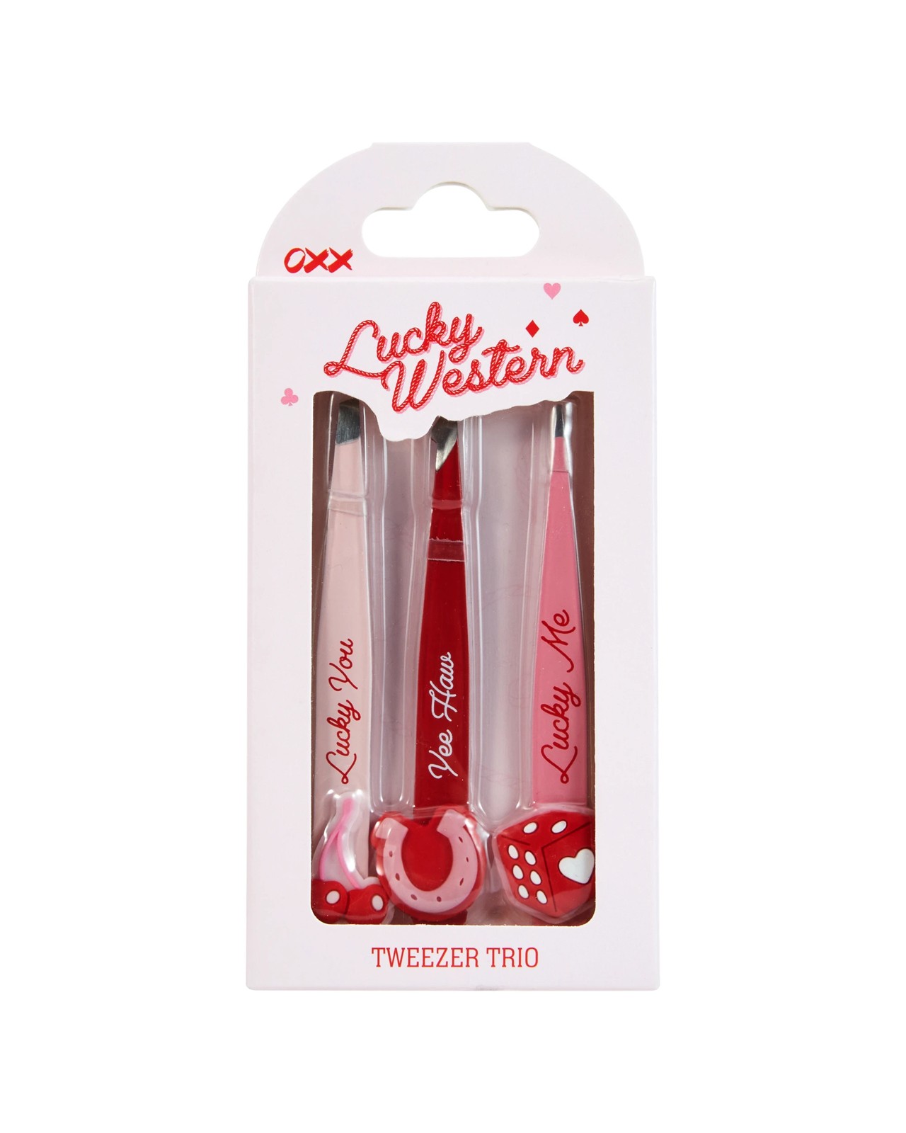Discover effortless beauty routines with the OXX Cosmetics Lucky Western Tweezer Trio. This thoughtfully designed set empowers you to shape your eyebrows with precision, remove stubborn or fine hairs and perfect every detail with ease. Featuring slant, square and point tip tweezers, it gives you complete control whether you're tackling delicate brows or tricky ingrown hairs. Finished in an elegant rose gold colour, these tweezers look gorgeous in any beauty kit and feel comfortable to use. Make grooming a breeze and enjoy confidence in your look every day. Upgrade your beauty essentials and step out feeling your best. Add this versatile trio to your collection now and take the guesswork out of great grooming.