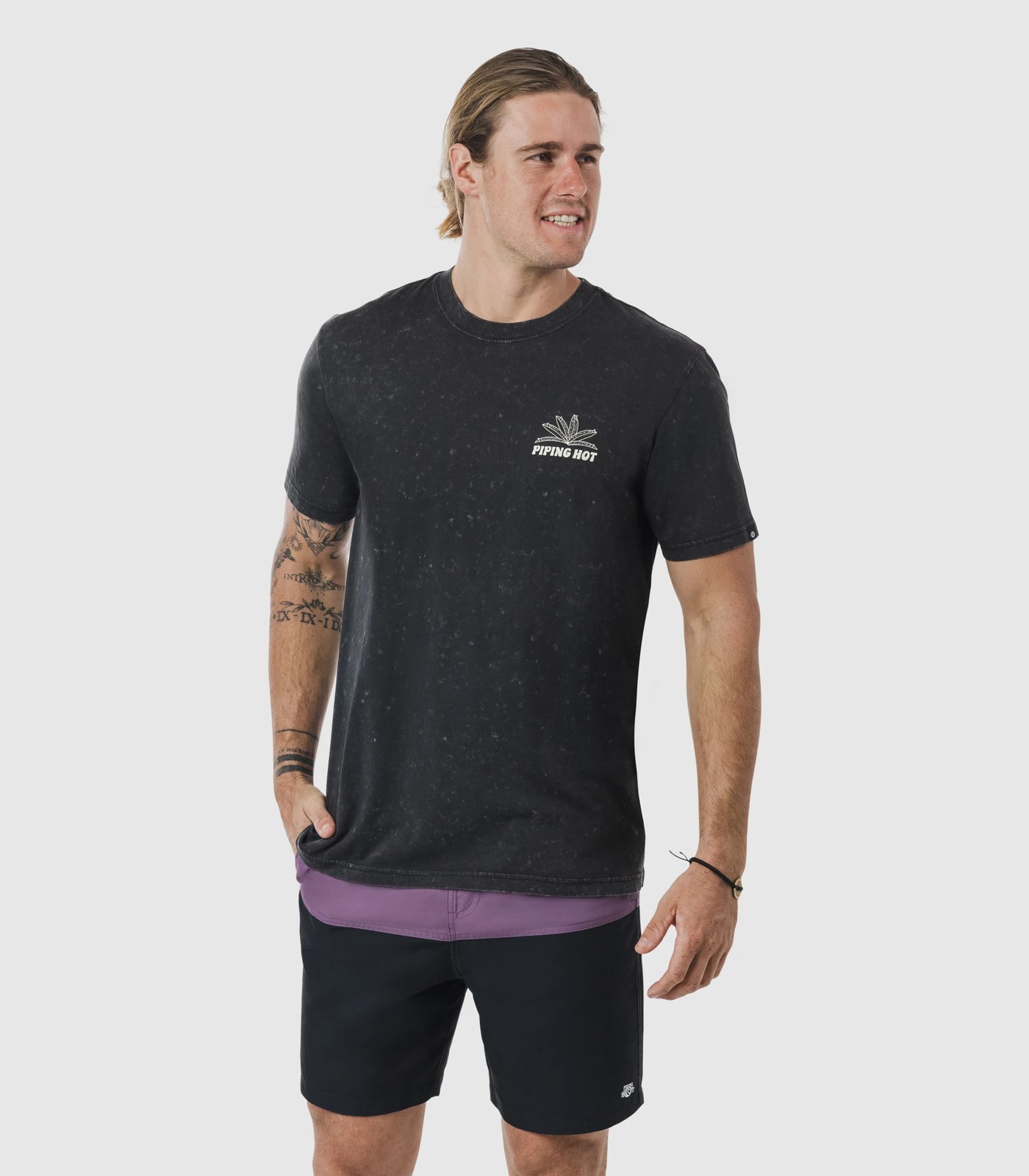 A modern take on the classic surf tee by Piping Hot, in a fashionable black colourway with a branded graphic on front and back.