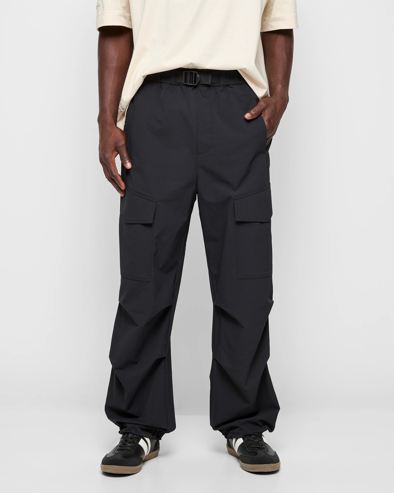 Experience unmatched comfort and unique style with our Parachute Trousers from Commons. Featuring a classic parachute design, these trousers are made from a nylon-rich fabric with added stretch elastane, ensuring you move with ease all day long. The elastic waistband with a decorative front buckle, along with the mock zip fly front, provides a snug yet stylish fit. With practical front and thigh pockets, these trousers are as functional as they are fashionable. Whether you're out for a casual stroll or making a bold fashion statement, these parachute trousers have got you covered. Get your pair today and refresh your wardrobe.