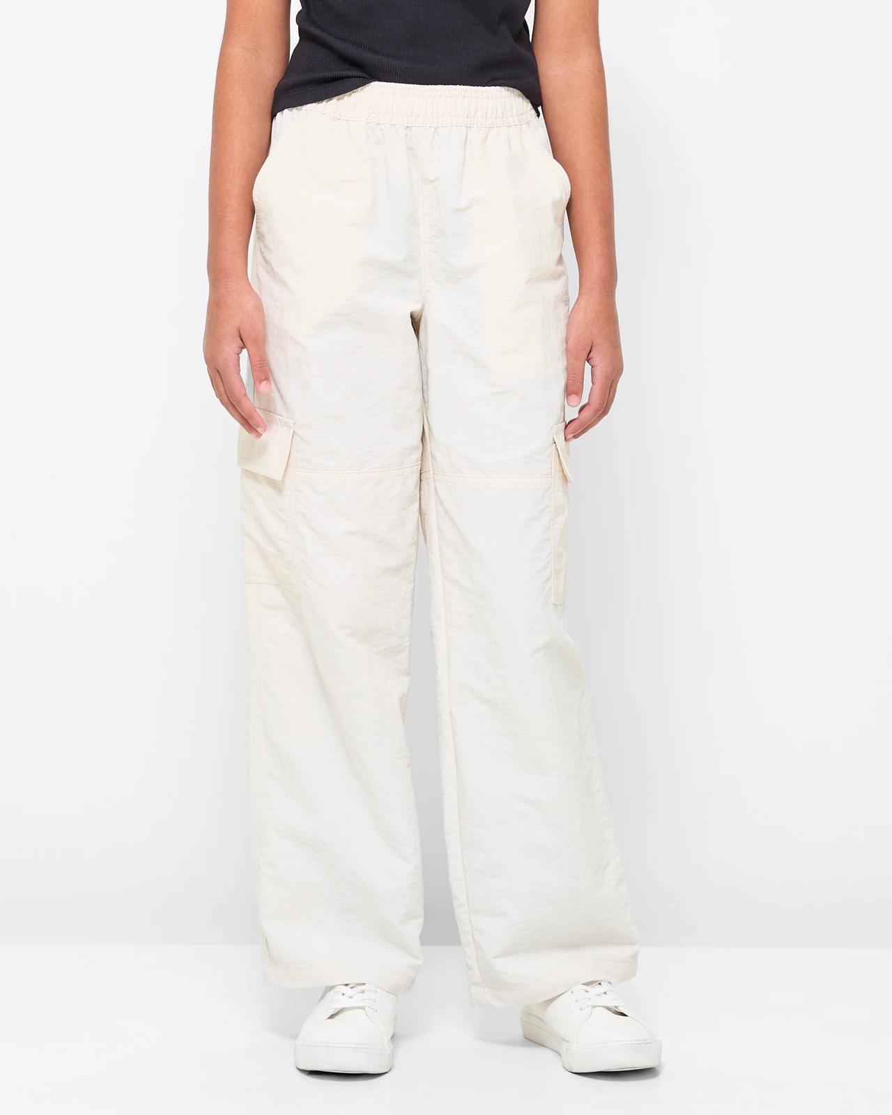 Expertly created with recycled materials, these chic girls Parachute Pants boast a regular fit and feature convenient side pockets along with stylish thigh cargo pockets. The elastic waistband ensures a perfect fit while the wide legs add a touch of flare to her wardrobe. Whether going to the movies with friends or hanging out at home, these pants will elevate her fashion game effortlessly. Get her a pair today and experience the perfect blend of style and sustainability!