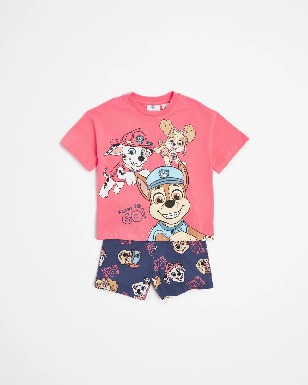 Introducing the boys Paw Patrol Boys Cotton Pyjama Set, the perfect sleepwear for your little Paw Patrol fan. Made from a soft and comfortable cotton, this pyjama set offers a regular fit for ultimate comfort. The set includes a vibrant red t-shirt, featuring a large Paw Patrol print on the chest, complete with a ribbed crew neck and short sleeves. The straight hem adds a stylish touch, while the matching navy blue shorts feature an all-over Paw Patrol print and an elastic waistband for a secure fit. Get your little one ready for a good night's sleep or a fun pyjama party with this fantastic Paw Patrol pyjama set.