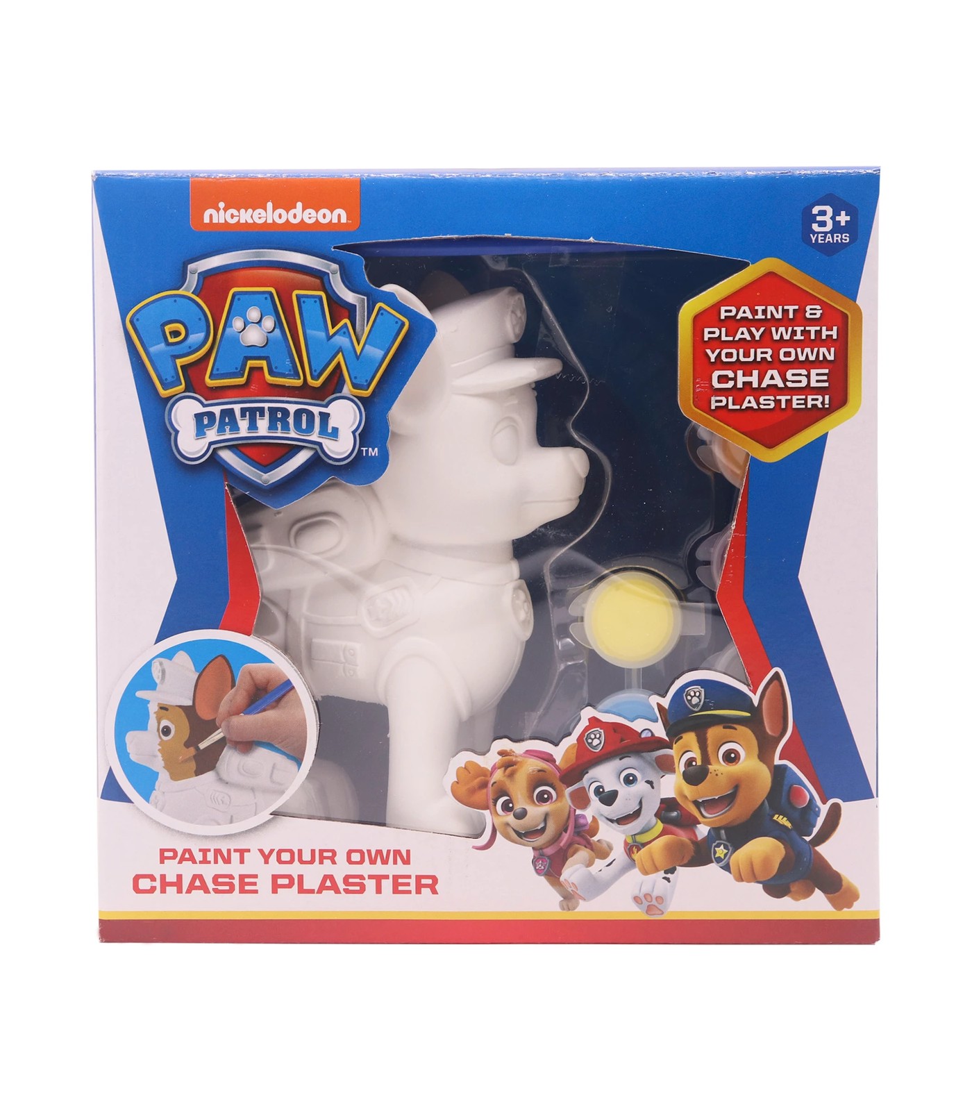 Paw Patrol Paint Your Own Plaster Character with paints and paintbrush.