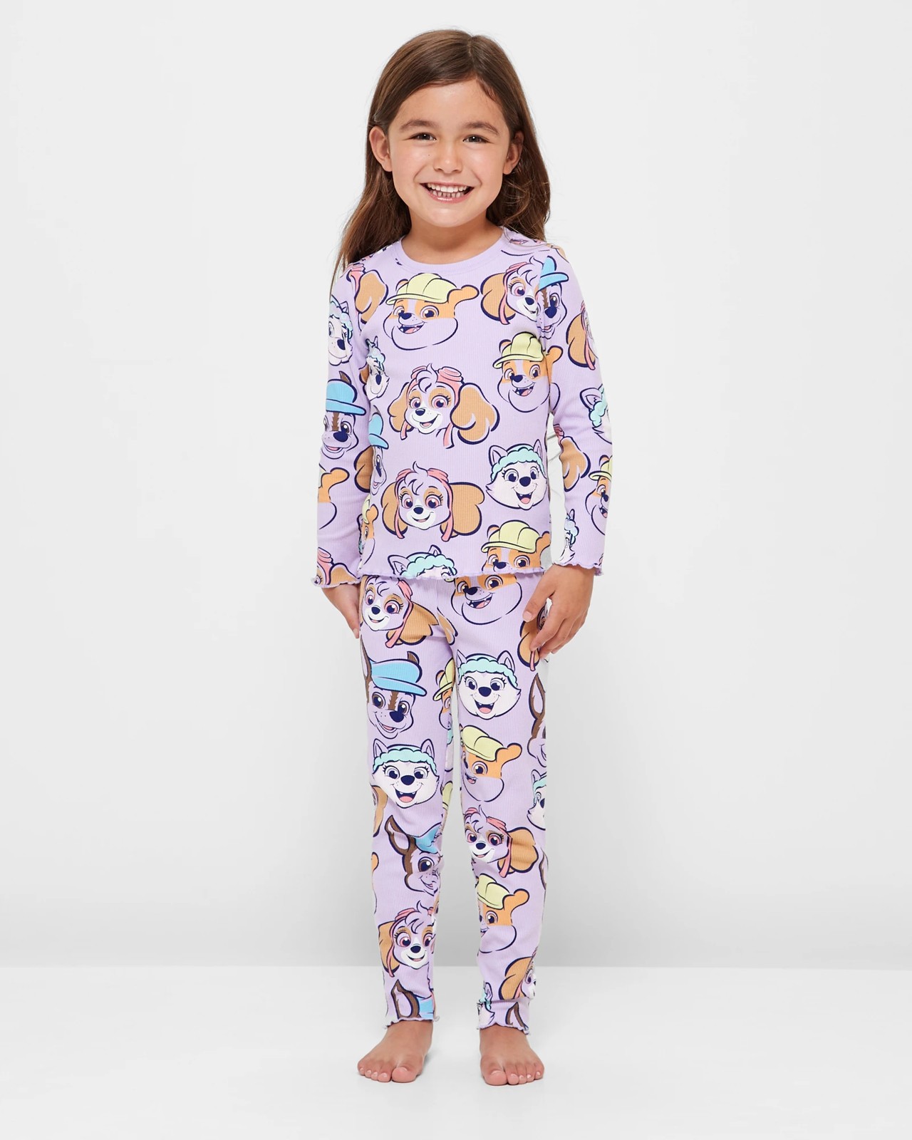 Transform bedtime into an adventure with the PAW Patrol Rib Pyjama Set! Your little one will love snuggling up in this cosy, cotton-rich sleep set, featuring a delightful all-over PAW Patrol print in a charming purple hue. Designed for both comfort and style, the set includes a rib-texture top with a round neck and long sleeves, and matching pants with an elastic waistband for a perfect fit. The lettuce hem adds a playful touch, making it a firm favourite. Treat your child to this adorable pyjama set and watch their face light up at bedtime!