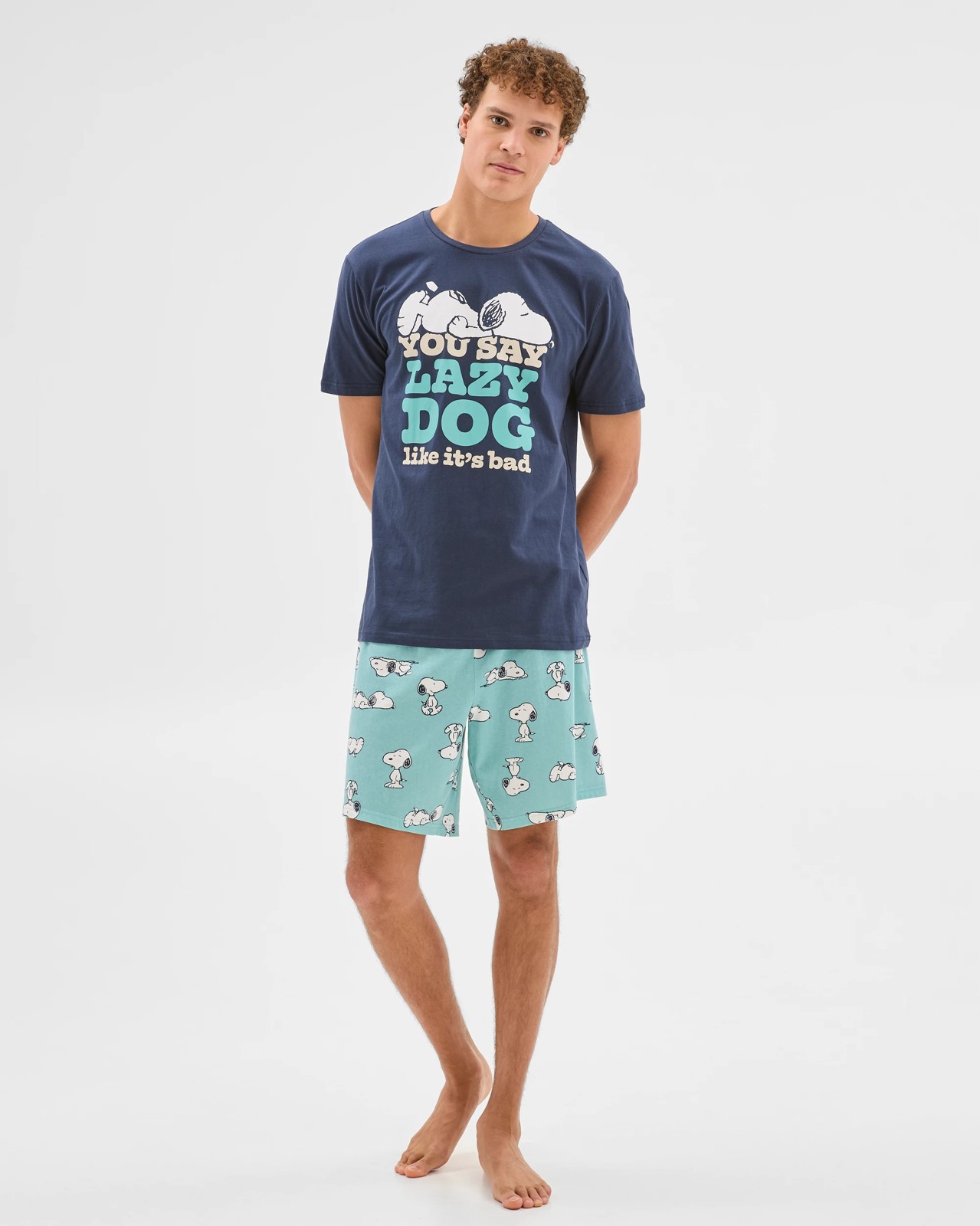 • Matching shorts: elastic waistband, all over Snoopy print, short length