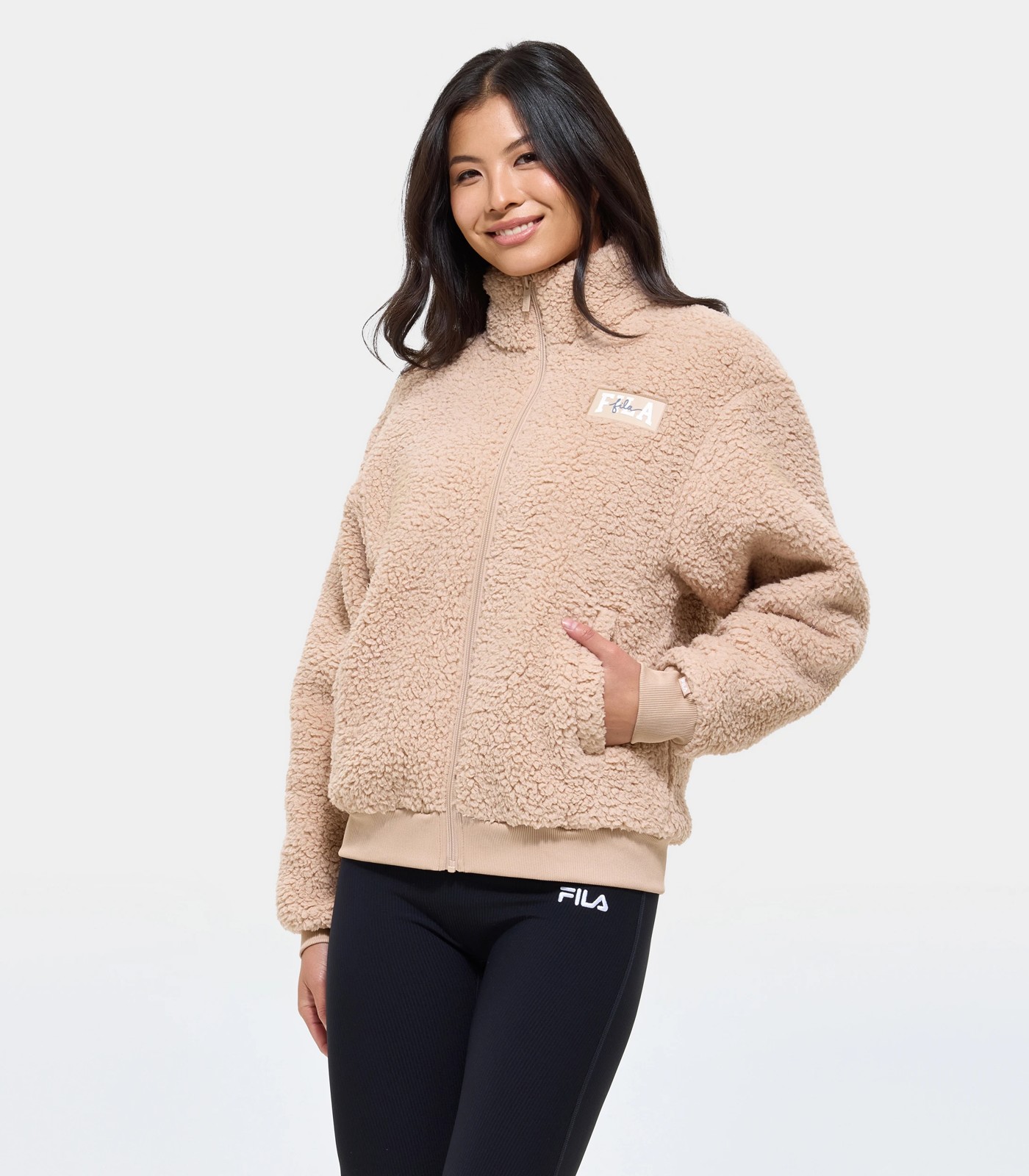 The Fila Pearl Teddy jacket is soft, warm and versatile, it will be your new go-to for the cooler days. This jacket is the perfect layering piece, whether you wear it to and from gym/pilates class, lounging or any casual outing. Designed with a full YKK zip-front allowing you to adjust the right amount of coverage. Featuring a Fila rubber badge to the left chest, two front pockets and ribbing to the sleeve cuffs and hem. This is the perfect addition to your winter wardrobe this season.