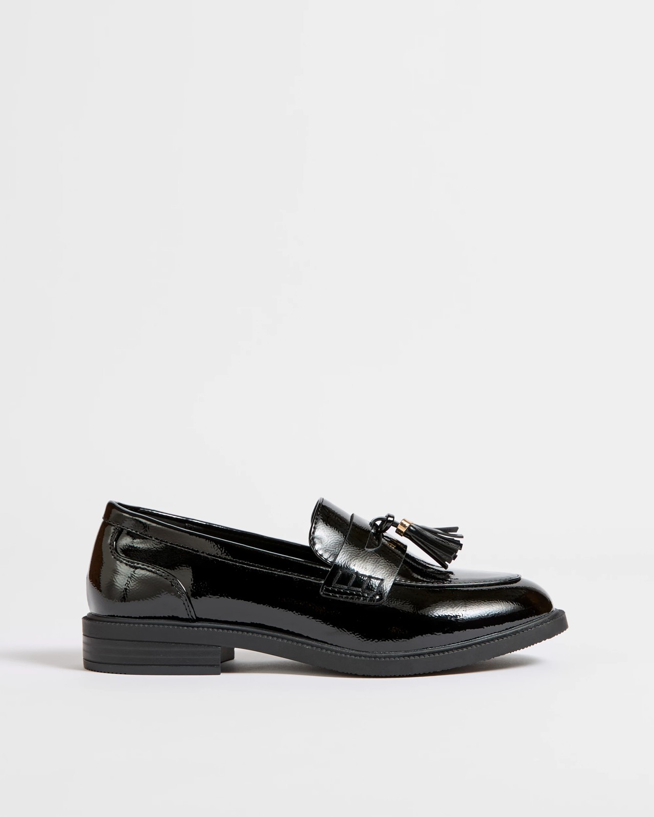 Refresh your style with the Penny Tassel Loafer, designed for women who value comfort and a polished look. This loafer features a sleek synthetic upper, pretty penny tassel detailing on the vamp, and a classic closed round toe with a rolled mocc apron front. The fold over stitched topline brings a subtle finishing touch, while the LuxeBase padded footbed promises cushioning no matter how busy your day gets. The synthetic sole offers support with every step you take. Step into shoes that combine everyday practicality with refined charm. Treat yourself today and make these loafers your go-to for both work and weekend plans.