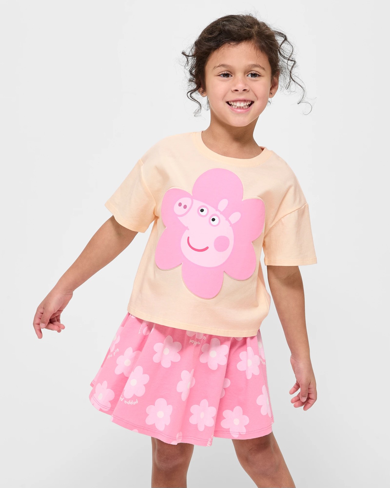 Dress your little one in delight with this Peppa Pig T-shirt and Skirt 2 Piece Set. The charming T-shirt, showcasing a large Peppa Pig print, is both playful and comfy, ensuring your child feels fabulous all day. Paired with a pink skirt adorned with an all-over print and an elastic waistband, it promises ease of movement and style. Perfect for playdates or casual outings, this set is a must-have for any Peppa Pig fan. Add this adorable ensemble to your child’s wardrobe today!