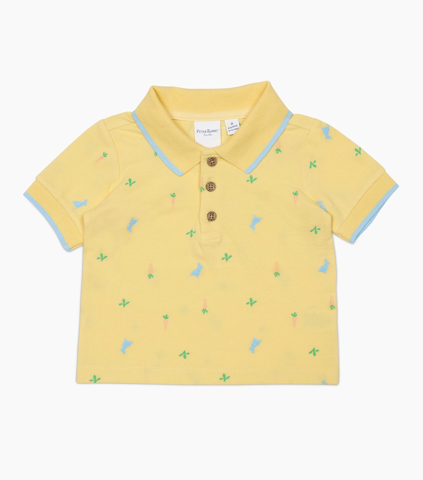 This peter rabbit polo shirt is designed in cotton pique. It features a classic 3 button up silhouette, an all-over embroidery design, contrast tipping to the collar and sleeve cuffs and antique look etched buttons. Wear with your little one’s favourite shorts or romper for the perfect summer outfit.