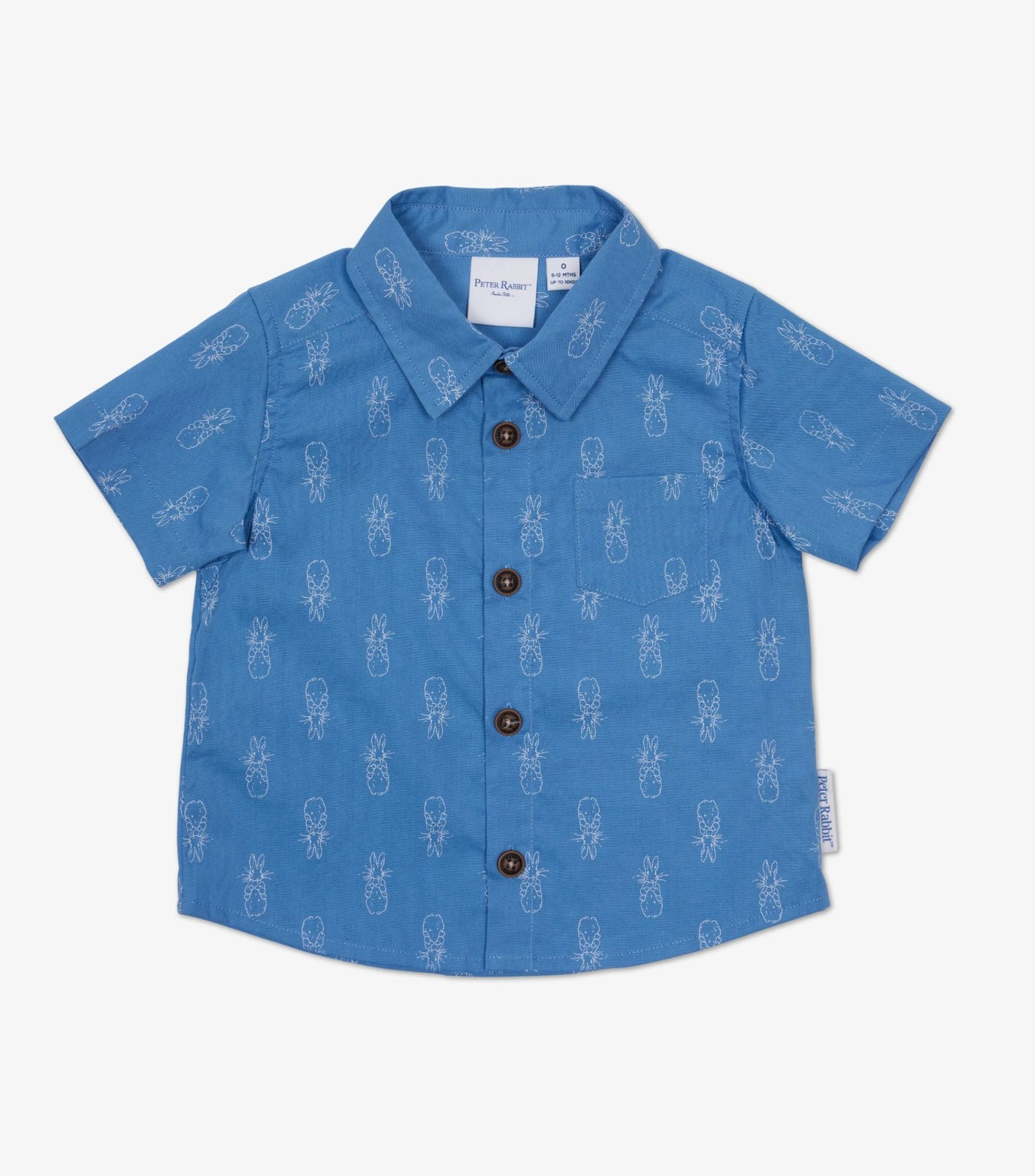 This peter rabbit set is designed in a soft cotton with an all-over print. The set includes a shirt and shorts, the shirt is a classic short sleeve with a chest pocket and antique look etched buttons. The shorts have elasticated waist. Wear with the matching hat for a cute, coordinated outfit for baby boy.