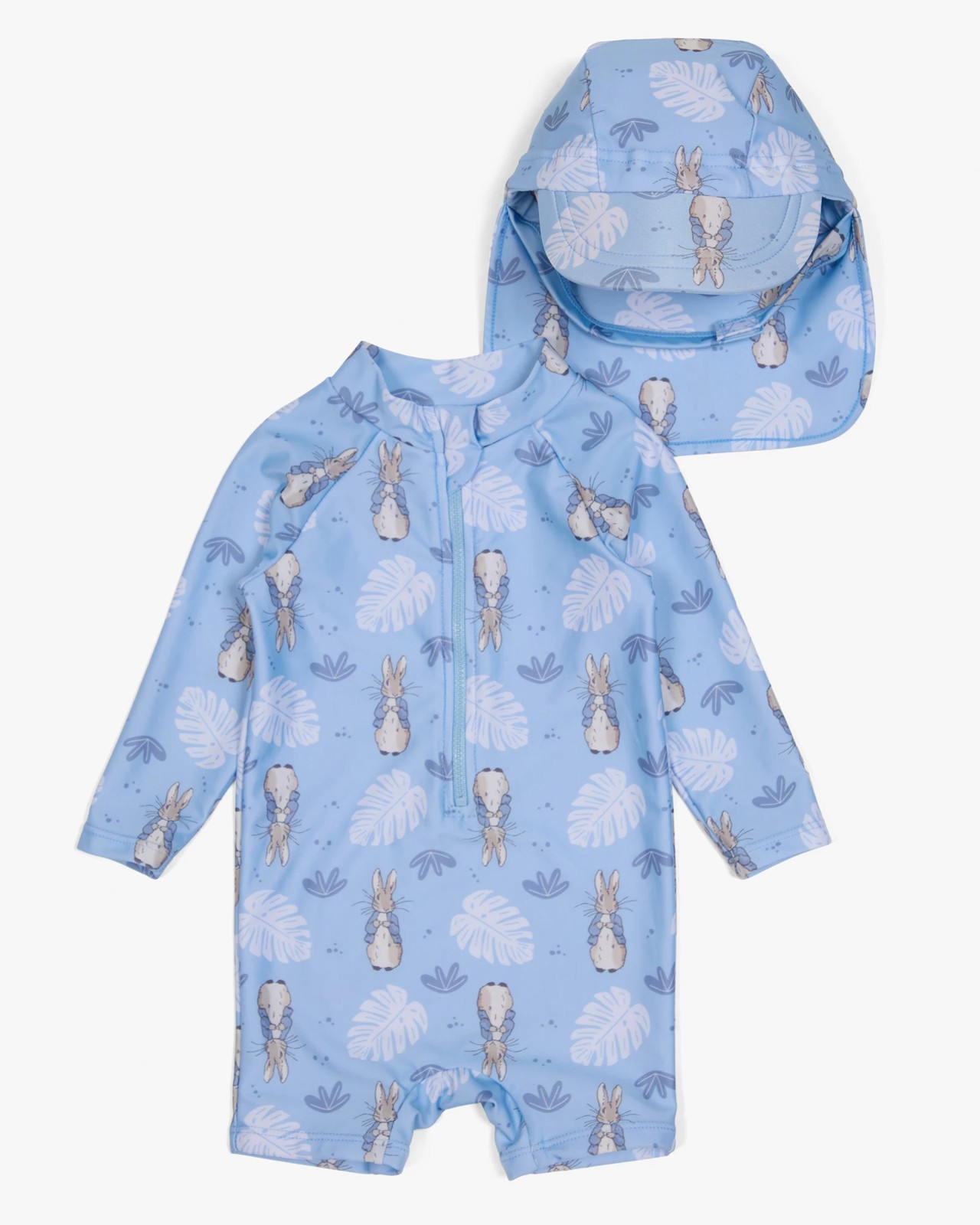 Peter Rabbit Baby Unitard Swim Set with Hat 2 Piece - Blue