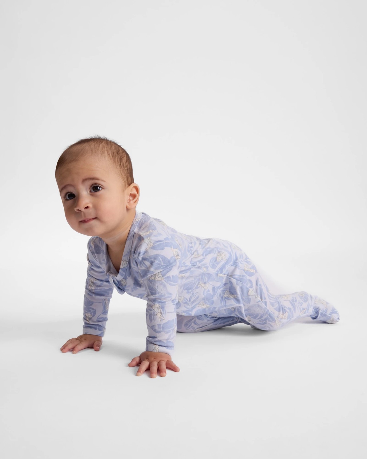 This peter rabbit coverall is designed in soft cotton elastane jersey with an all-over blue print. The coverall has a full-length zip for easy dressing and changing, turnover cuffs at the feet for extra comfort.
