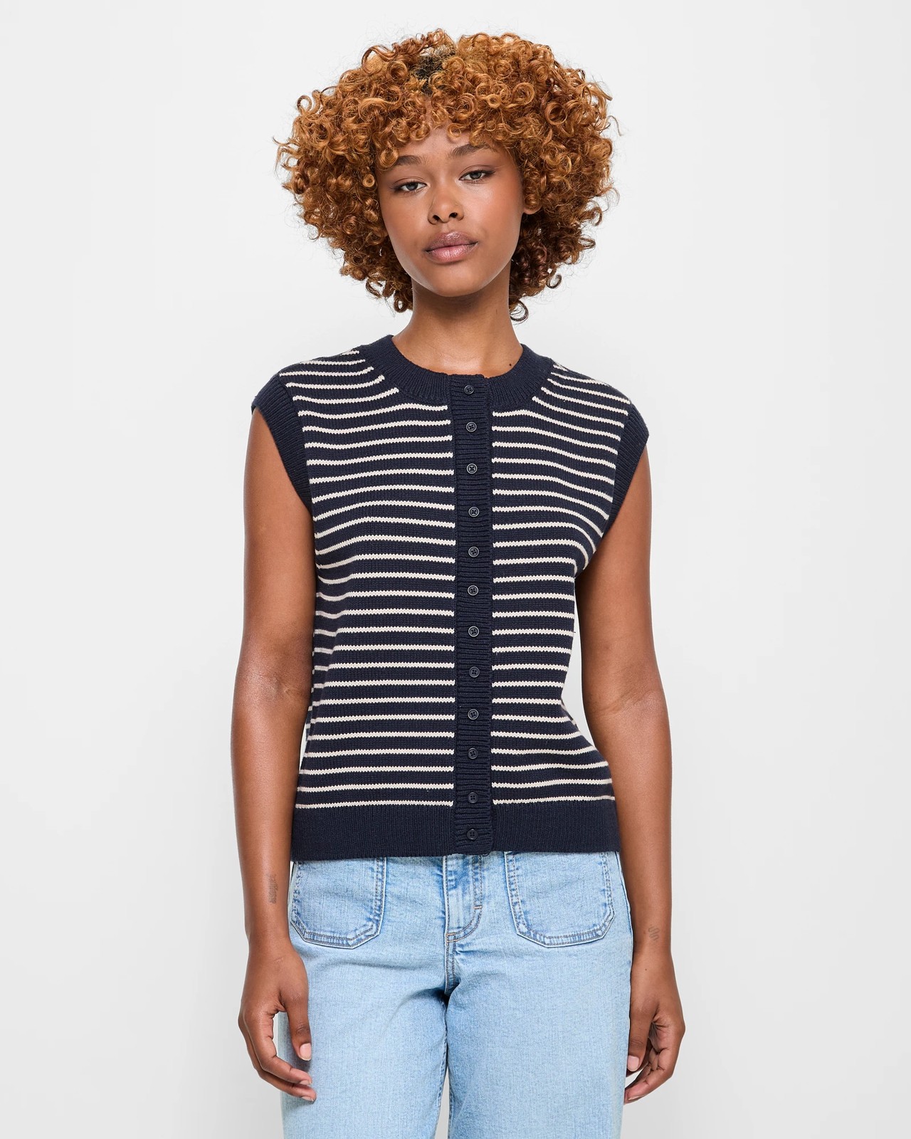 Enhance your wardrobe with the Petites Australian Cotton Blend Button Knit Vest. Made with a delightful mixture of cotton and acrylic, this vest ensures a cosy and soft feel. The button-through front brings a touch of sophistication, while the petite fit offers a tailored look. Featuring a ribbed crew neckline and armholes, this sleeveless piece is versatile enough to complement any outfit. Perfect for layering, this knit vest will become an essential part of your collection. Don't wait to add a bit of timeless style to your attire.