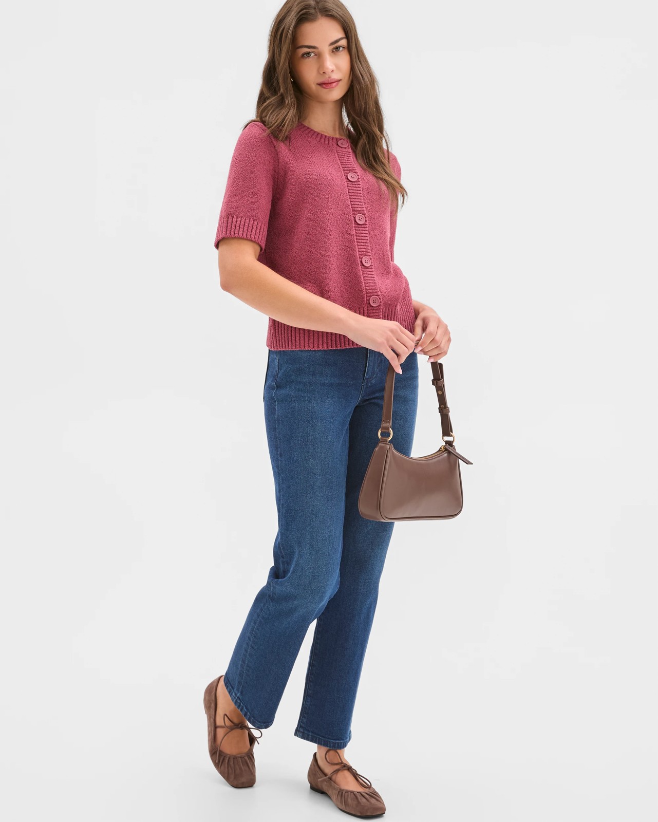 Petites Australian Cotton Blend Short Sleeve Mini Boucle Cardigan