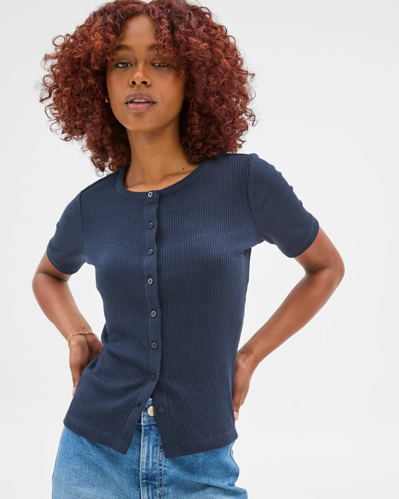 Step out in confidence with our Petites Button Front Ribbed T-Shirt, tailored to suit petite figures perfectly. Made from a soft mix of viscose and cotton with added stretch, this t-shirt delivers all-day comfort and a stylish feel. The ribbed fabric offers delightful texture while the button front and crew neck create a contemporary look. Ideal for layering or wearing solo, it’s an easy choice for either laid-back afternoons or catching up with friends. Bring a touch of charm to your wardrobe—get yours now.