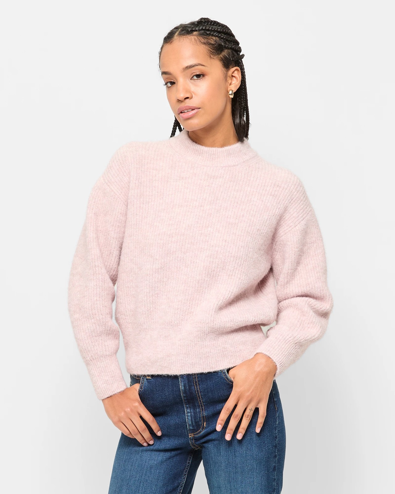 Discover comfort and style with the Petites Crew Balloon Sleeve Plush Knit Jumper. Made from a blend of polyester, nylon, and wool, this jumper includes a stretchy elastane component for a cosy fit. The all-over fluffy ribbed knit design makes it a standout piece for chilly days. With its crew neckline and long ribbed cuff sleeves, it offers both warmth and a chic look. Perfect for casual outings or cosy evenings at home, this jumper is a versatile addition to your wardrobe. Make it yours today.