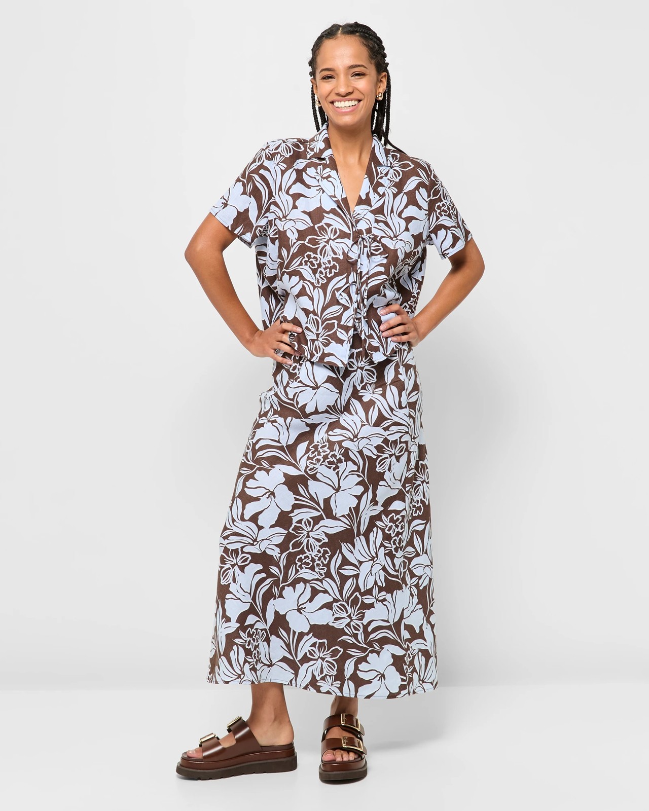 Experience the charm of our Petites European Linen Bias Maxi Skirt. This skirt, made from fine European linen, is light and breathable, ideal for warm days. With a pull-on design and flat hidden elastic waistband, it offers a comfortable and seamless fit. The bias cut coupled with its maxi length ensures it drapes beautifully as you move. The summer floral pattern adds a vibrant touch to any outfit. Enhance your wardrobe with this graceful piece today!