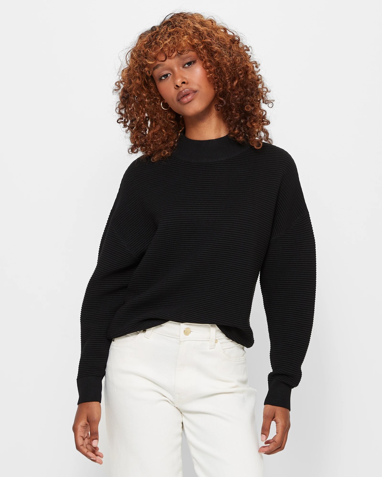 Round ribbed funnel neckline