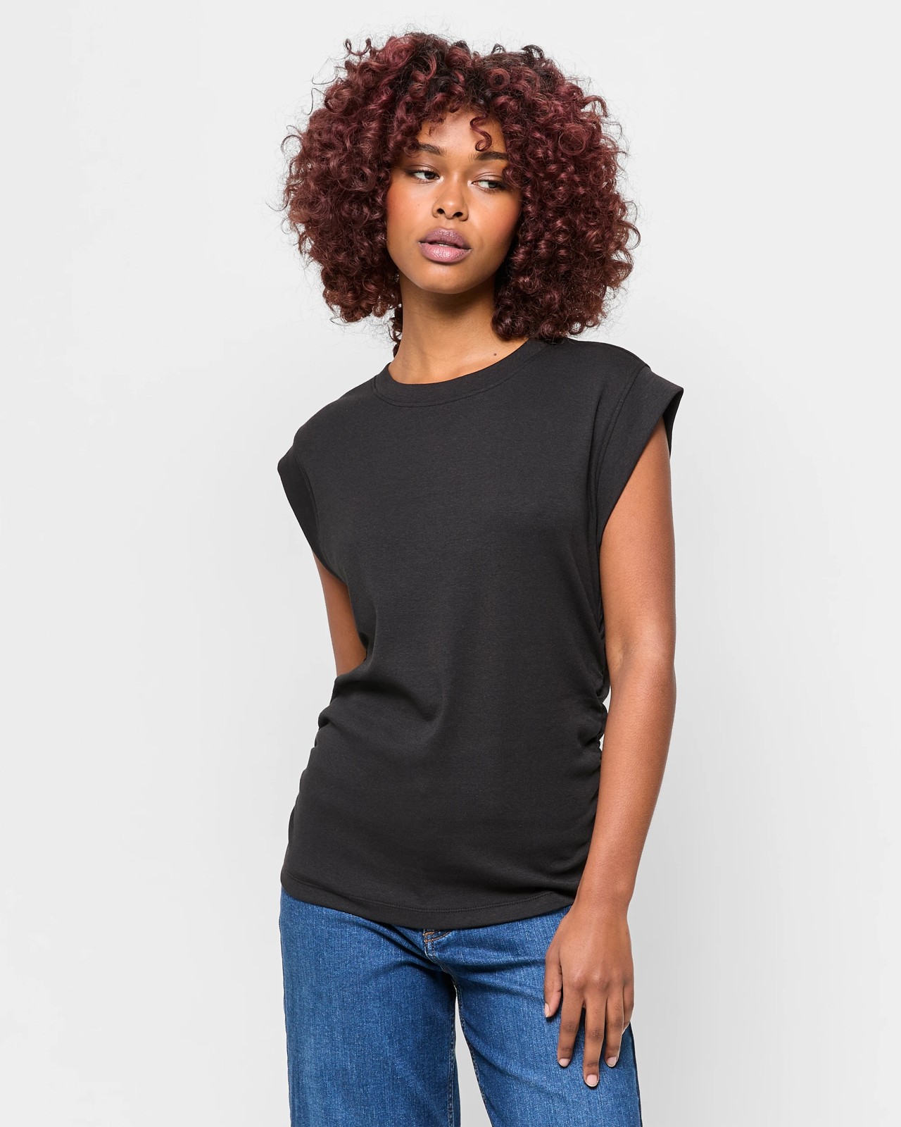 Petites Gathered Waist T-Shirt - Black