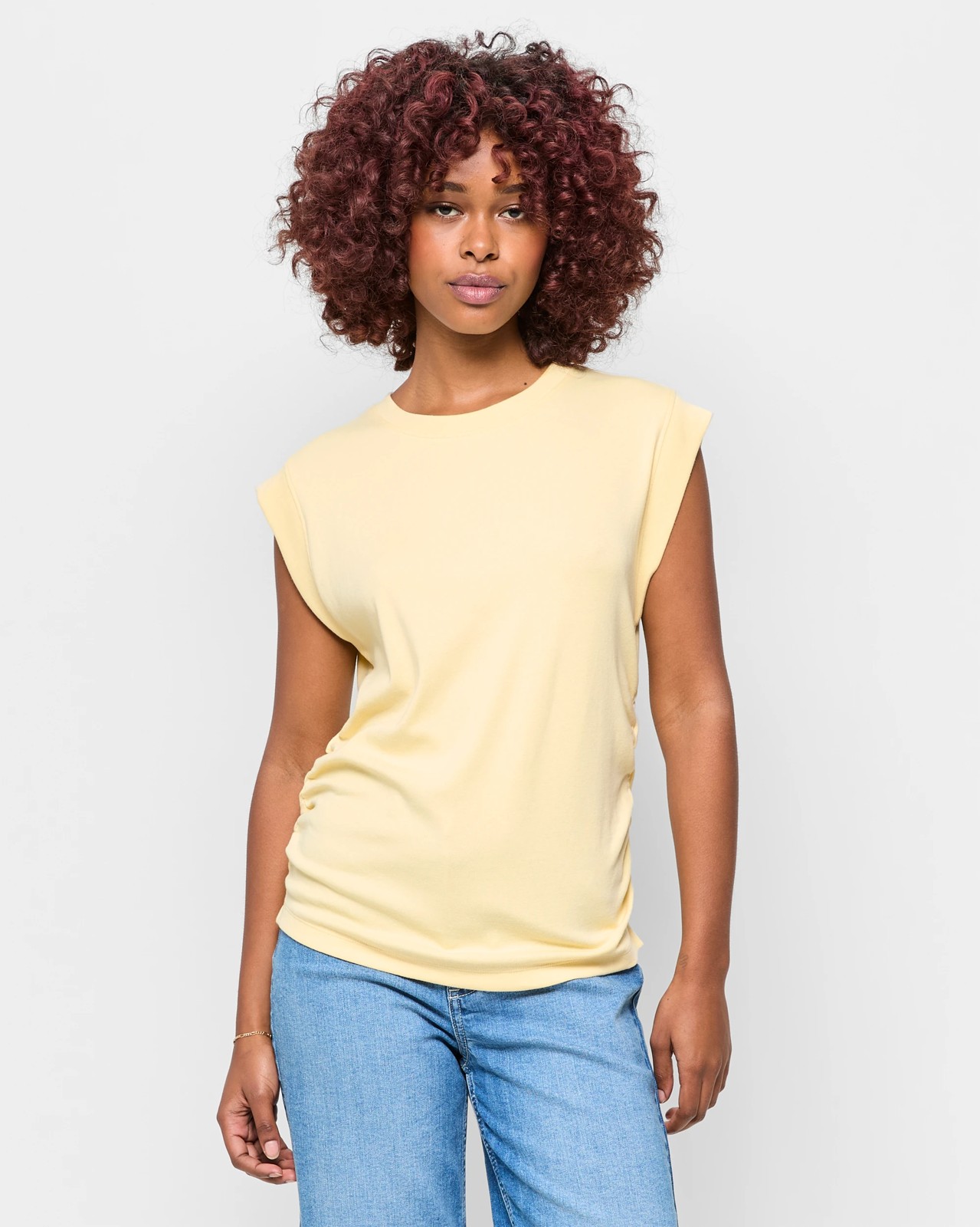 The Petites Gathered Waist T-Shirt delivers an easy sense of style while focusing on comfort. Soft cotton and modal fabric with a gentle stretch allows for a relaxed and confident fit, perfect for daily outings. The ribbed crew neckline and striking ribbed cuffs on the short sleeves create eye-catching detail. Gathering down the side seams adds interest to the design, while the straight hemline keeps the look crisp and modern. Whether paired with your favourite jeans or styled beneath a cosy jumper, this tee is sure to become your go-to piece. Treat yourself to effortless charm every time you get dressed.