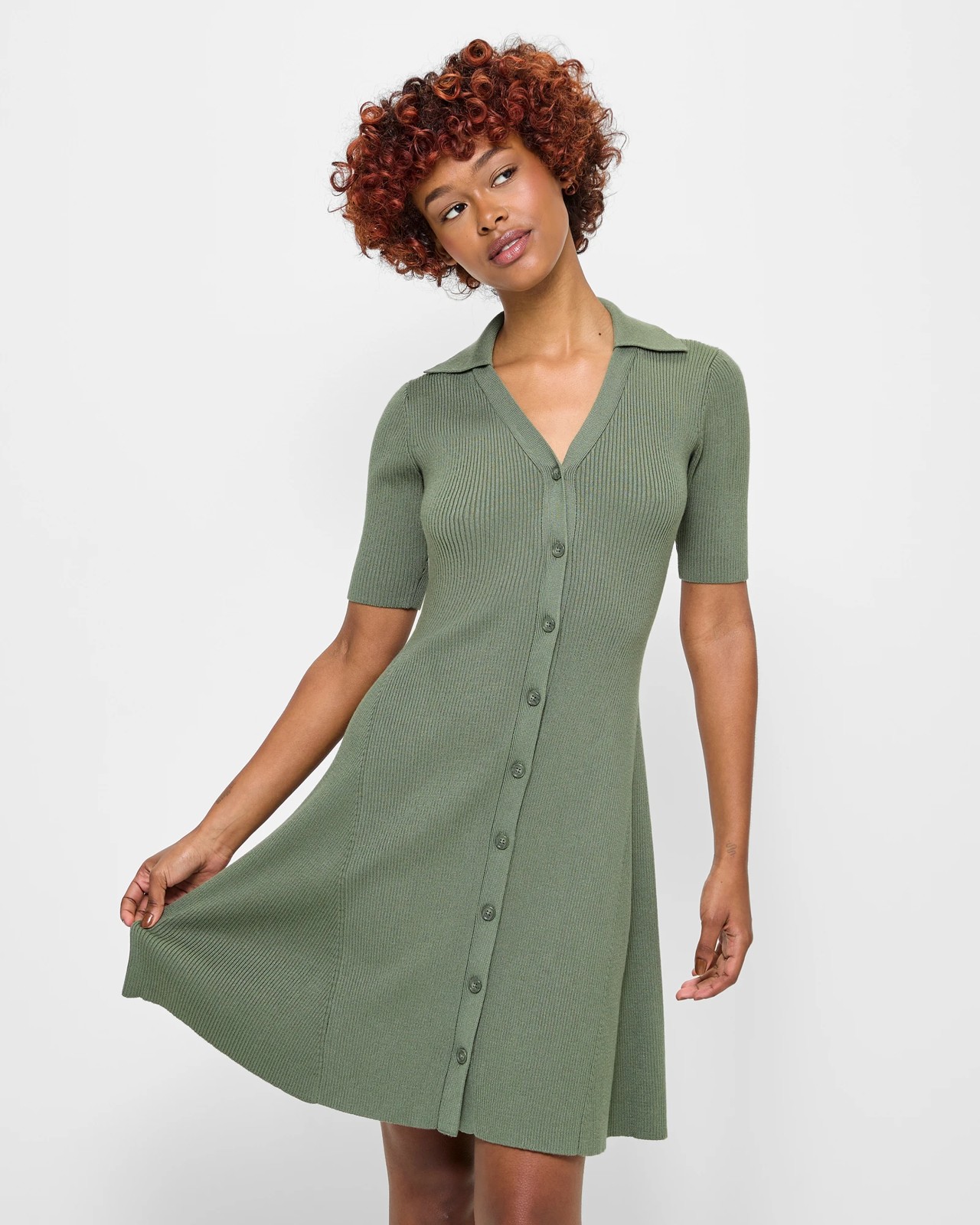 Introducing the Petites Knit Mini Dress by Dannii Minogue, a stylish and comfortable dress that's perfect for any occasion. Made from a luxurious blend of viscose and nylon, this dress features an all-over ribbed knit design that adds a touch of texture and sophistication. With its petite fit and round collared neckline with a v-drop front, this dress is designed to flatter your figure and enhance your natural beauty. The short sleeves and button-through front add a playful and feminine touch. The A-line cut skirt and straight hemline create a flattering silhouette, while the midi length adds a touch of elegance. Don't miss out on this must-have dress. Shop now and experience the perfect blend of style and comfort.