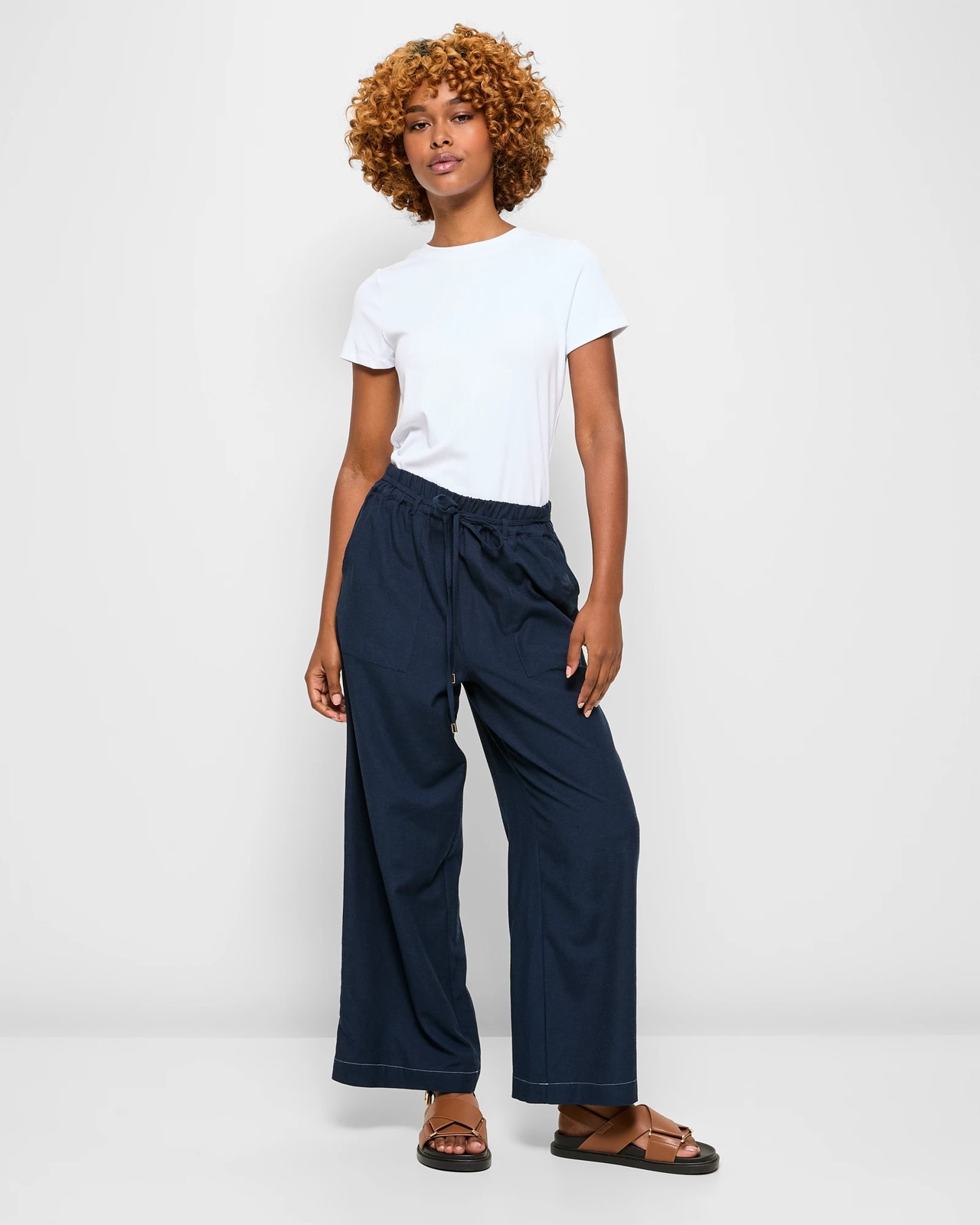 Enjoy ultimate comfort and effortless style with these Petites Linen Blend Drawstring Wide Leg Trousers. Created from a blend of viscose, cotton, and linen, they are incredibly lightweight and soft, perfect for wearing all day. The chic design brings a modern look, while the thick elastic waistband and removable drawstring ensure a snug yet flexible fit. Large front pockets add practicality, and a wide-leg cut provides a contemporary look.