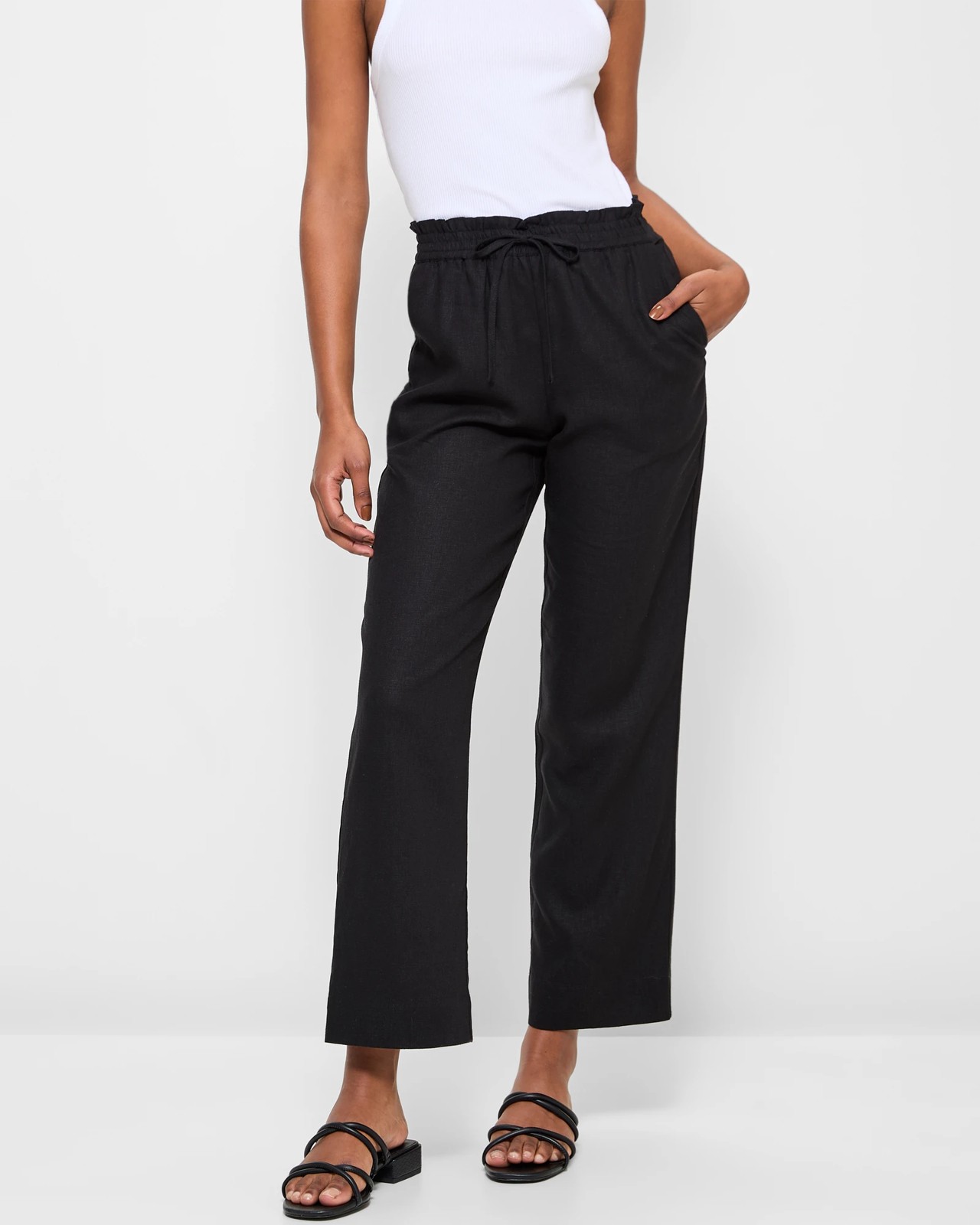 Discover the Dannii Minogue Petites Linen Blend Pants, tailored to make you feel comfortable and stylish effortlessly. Crafted from a linen/viscose blend, these pants are lightweight, ensuring breathability all day long. With a high-waisted design and a thick paperbag elastic waistband, they offer a perfect fit. The pants feature practical side pockets and a straight leg silhouette that gives a chic touch. Elevate your wardrobe with these full-length pants that boast a classic straight hemline. Own your style with these versatile pants!