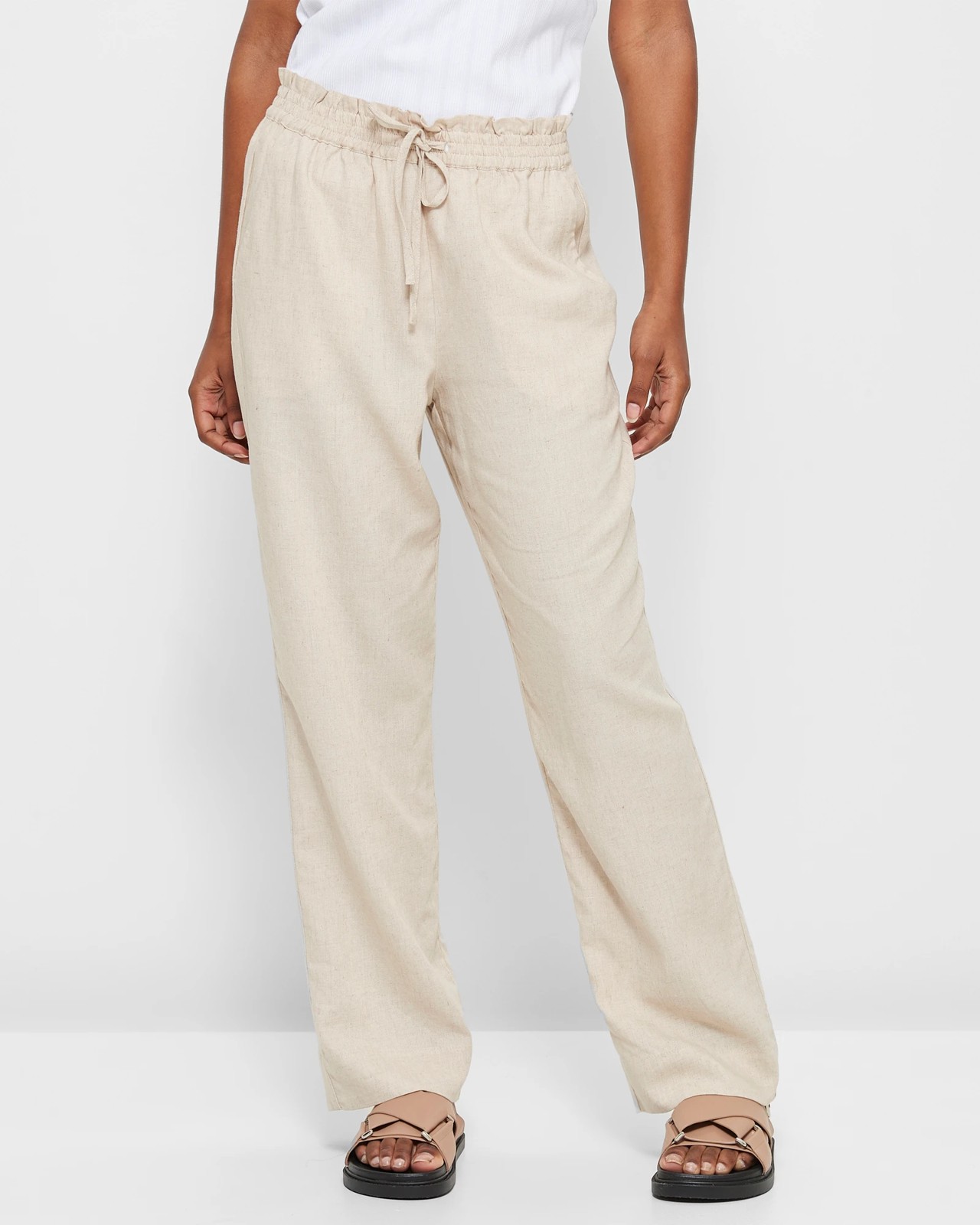 Discover the Dannii Minogue Petites Linen Blend Pants, tailored to make you feel comfortable and stylish effortlessly. Crafted from a linen/viscose blend, these pants are lightweight, ensuring breathability all day long. With a high-waisted design and a thick paperbag elastic waistband, they offer a perfect fit. The pants feature practical side pockets and a straight leg silhouette that gives a chic touch. Elevate your wardrobe with these full-length pants that boast a classic straight hemline. Own your style with these versatile pants!