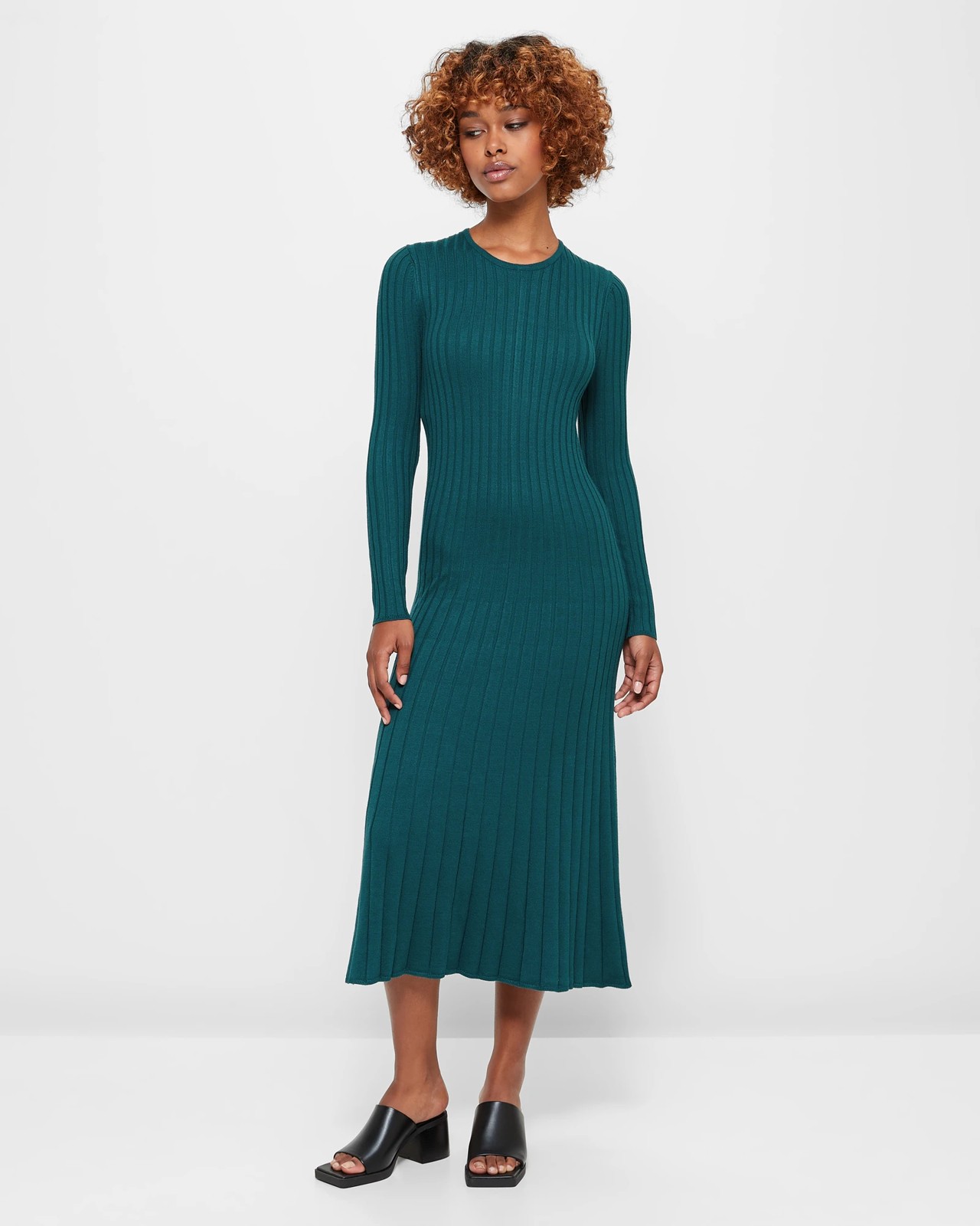 Petites Long Sleeve Rib Knit Midi Dress - Dannii Minogue