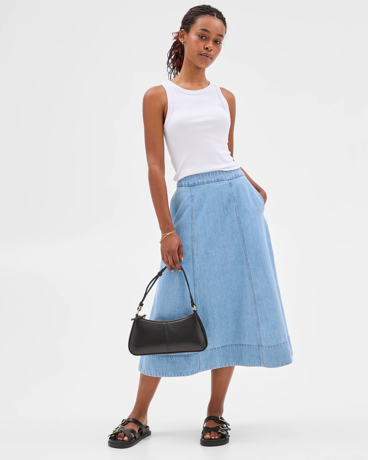 Petites Panelled Denim Midi Skirt