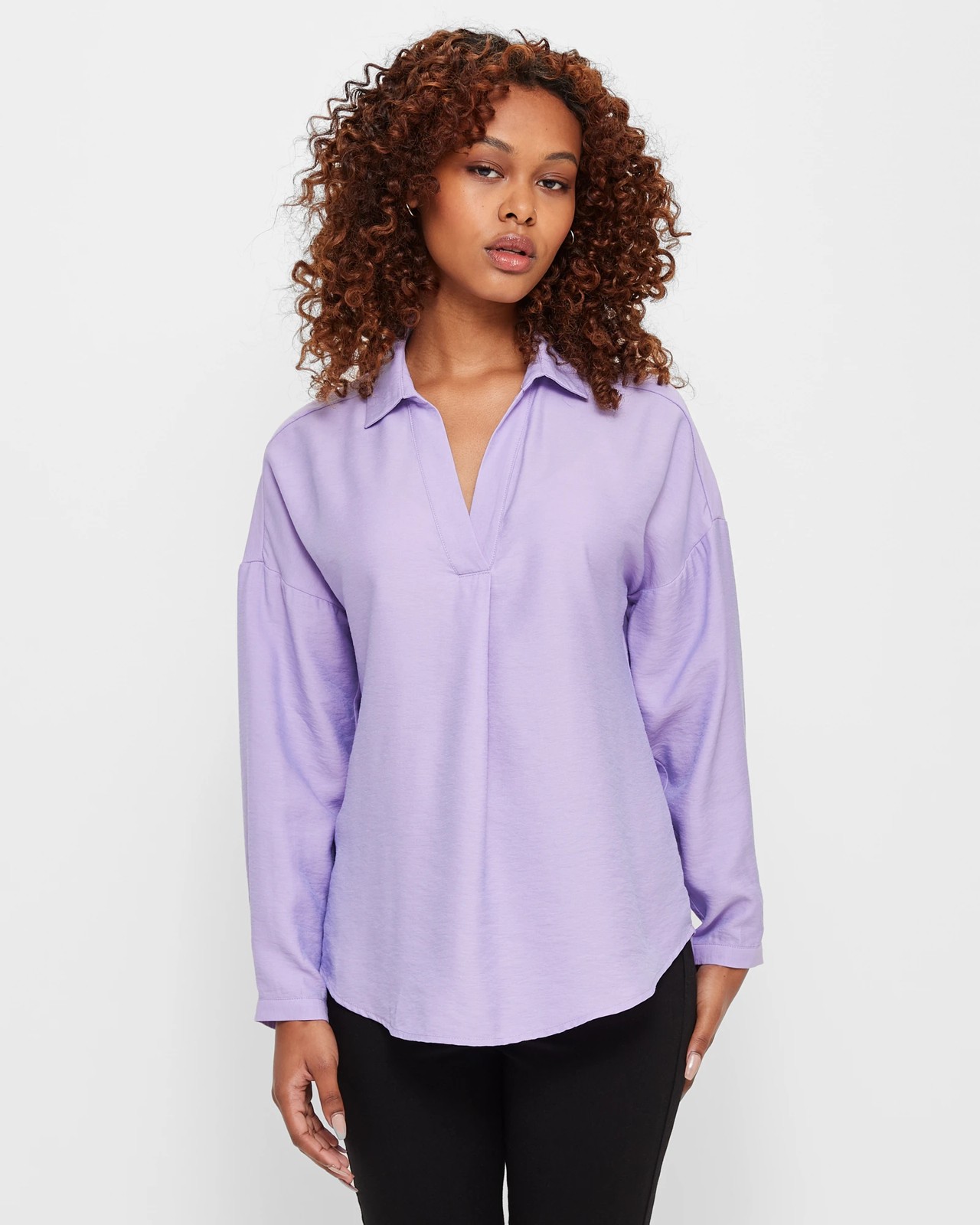 A great everyday top to wear with your favourite bottoms, the Dannii Minogue Petites popover shirt features a lightweight viscose and nylon blended fabrication with an all over textured design, long sleeves and a round collared neckline with front v-drop and a notch front pleat.