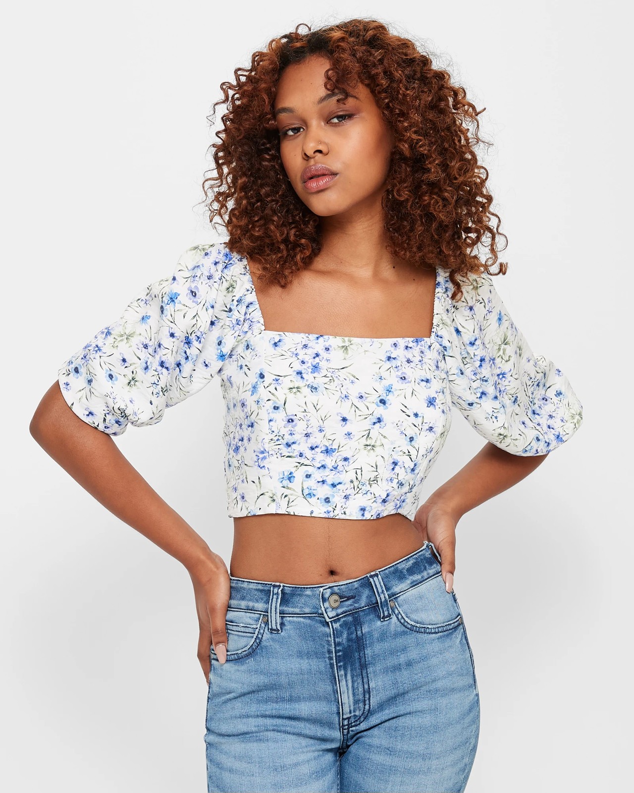 Look and feel your best in this gorgeous Petites Puff Sleeve Crop Top from Dannii Minogue. Crafted from a lightweight blend of viscose and nylon, the top has a petite fit and features a beautiful floral print. It has a square neckline with elastic around the shoulders, as well as mid-length puff sleeves with elastic cuffs. The panelled front and crop length give it shape, while the straight hemline and back centre shirred panel add texture. Perfect for adding some feminine charm to your wardrobe, this is sure to become an everyday favourite.