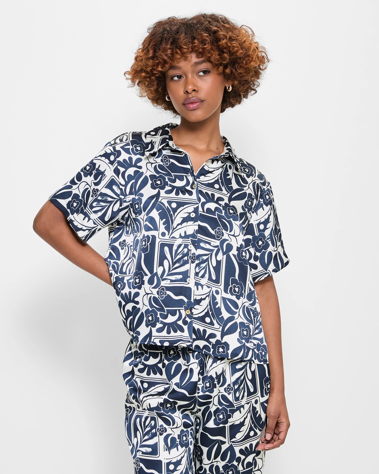 Experience the sophistication with the Dannii Minogue Petites Satin Shirt. This exquisite top, made from high-quality polyester, features a luxurious satin texture and a perfectly sized petite fit. The abstract floral design and sleek round collar make it ideal for any event. With a button-through front, short sleeves, and a curved hemline, you'll feel both stylish and comfortable. Combine it with our matching satin trousers (sold separately) for a complete and chic look.