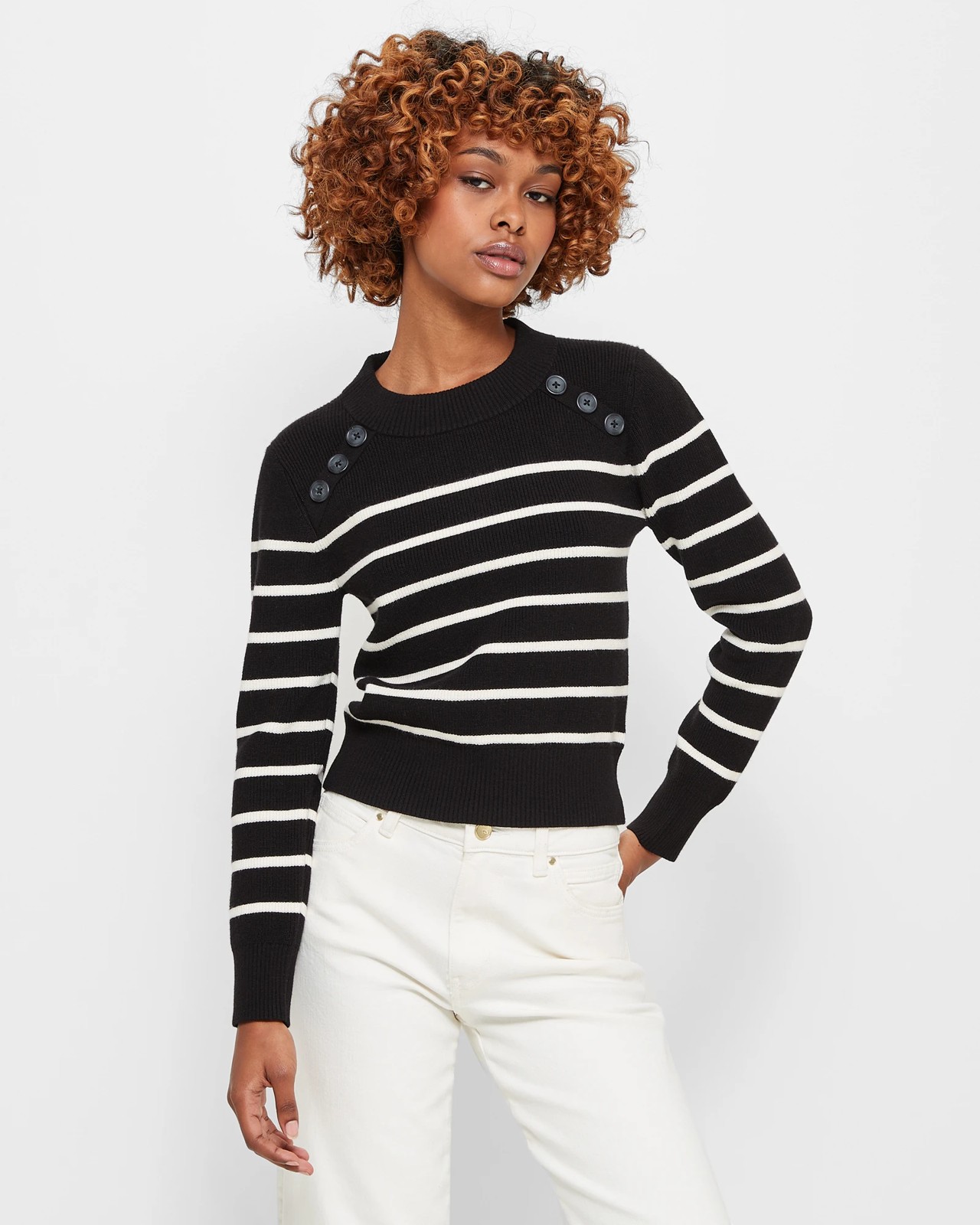 Add a touch of sophisticated style to your wardrobe with the Petites Stripe Button Jumper by Dannii Minogue. Crafted from a luxurious blend of viscose, polyester and nylon, the jumper features an eye-catching all-over knit design in a petite fit. The ribbed round neckline and long ribbed cuff sleeves offer comfort and elegance, while the button detailing across the collarbones adds a unique touch. Finished with a thick ribbed straight hemline, the jumper is ideal for adding a stylish layer to your look. Get ready to elevate your fashion game with the Dannii Minogue Petites collection.