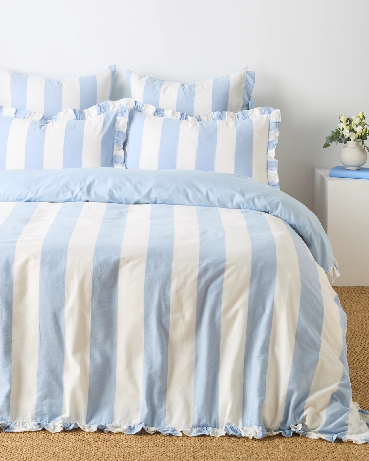Peyton Herringbone Weave Stripe Quilt Cover Set - Sky Blue