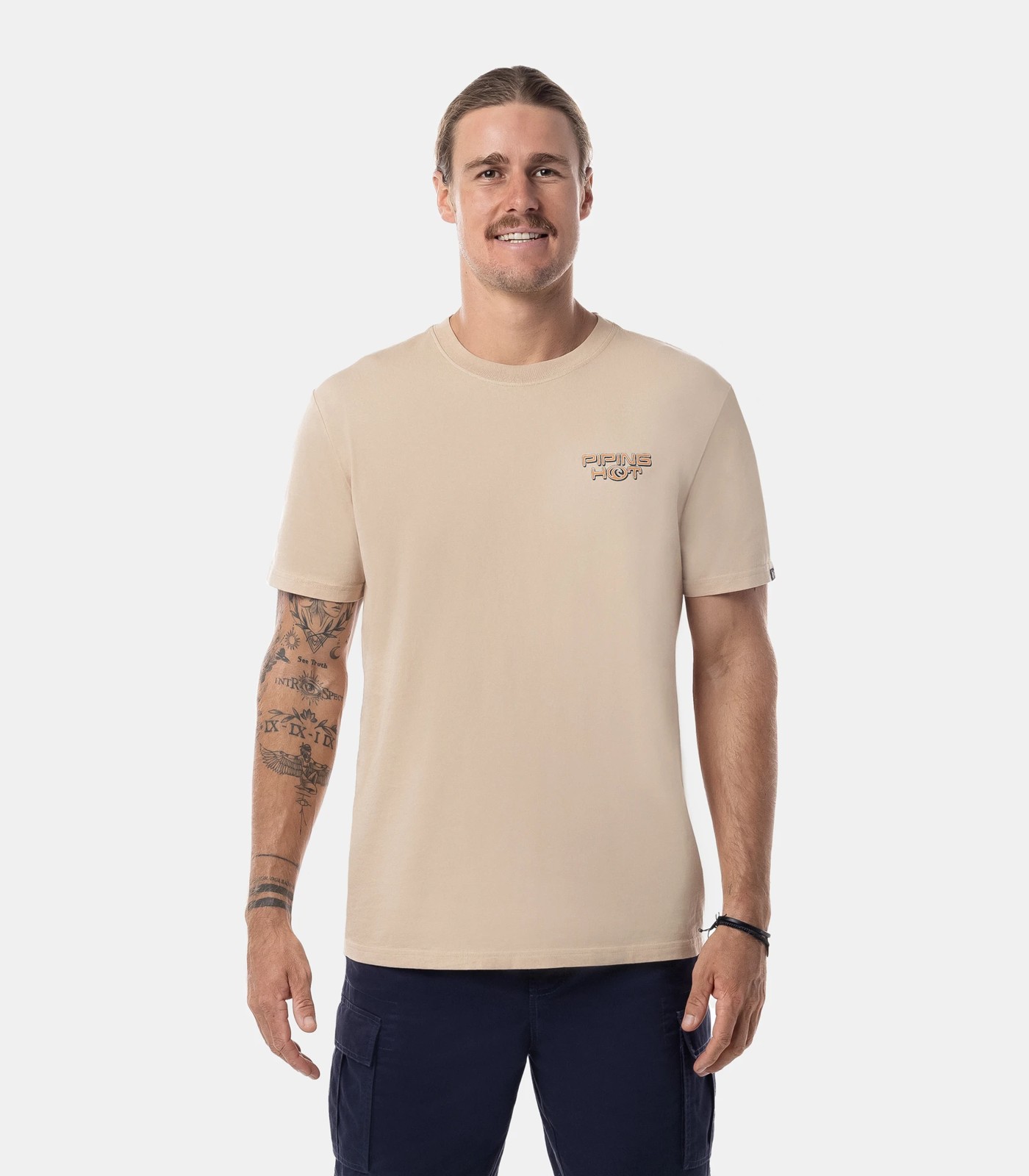 Piping Hot t-shirt<br />Regular fit<br />Neutral sand colourway<br />Ribbed round neckline<br />Short sleeve<br />Piping Hot print to chest and back<br />Straight hem