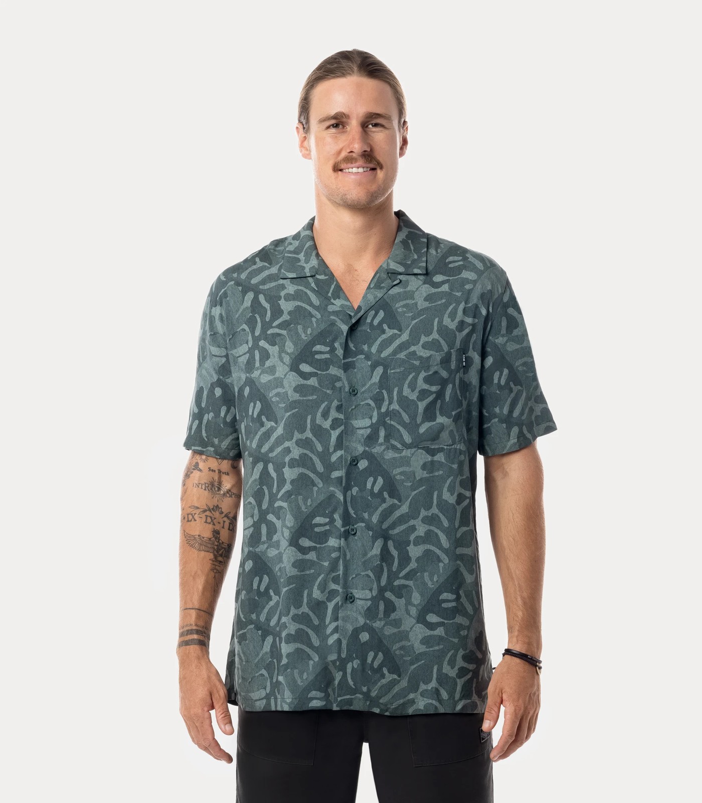 A stylish shirt that will pair perfectly with your favourite bottoms, whether it be on a casual basis or for nights out, this coral-inspired camo print shirt is relaxed and effortless.<br /> It's crafted from soft viscose with a single chest pocket and a resort collar.
