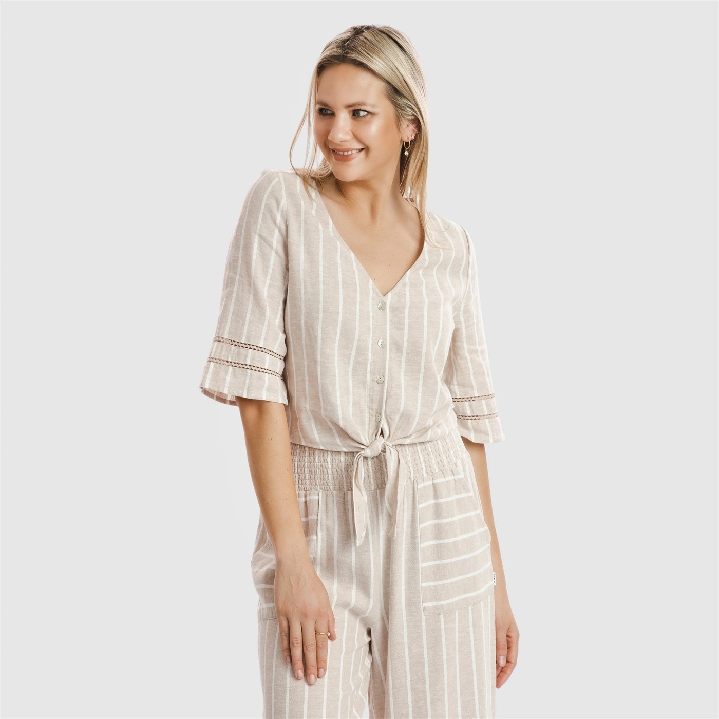 • Made from a breathable and drapey linen/viscose blend fabrication