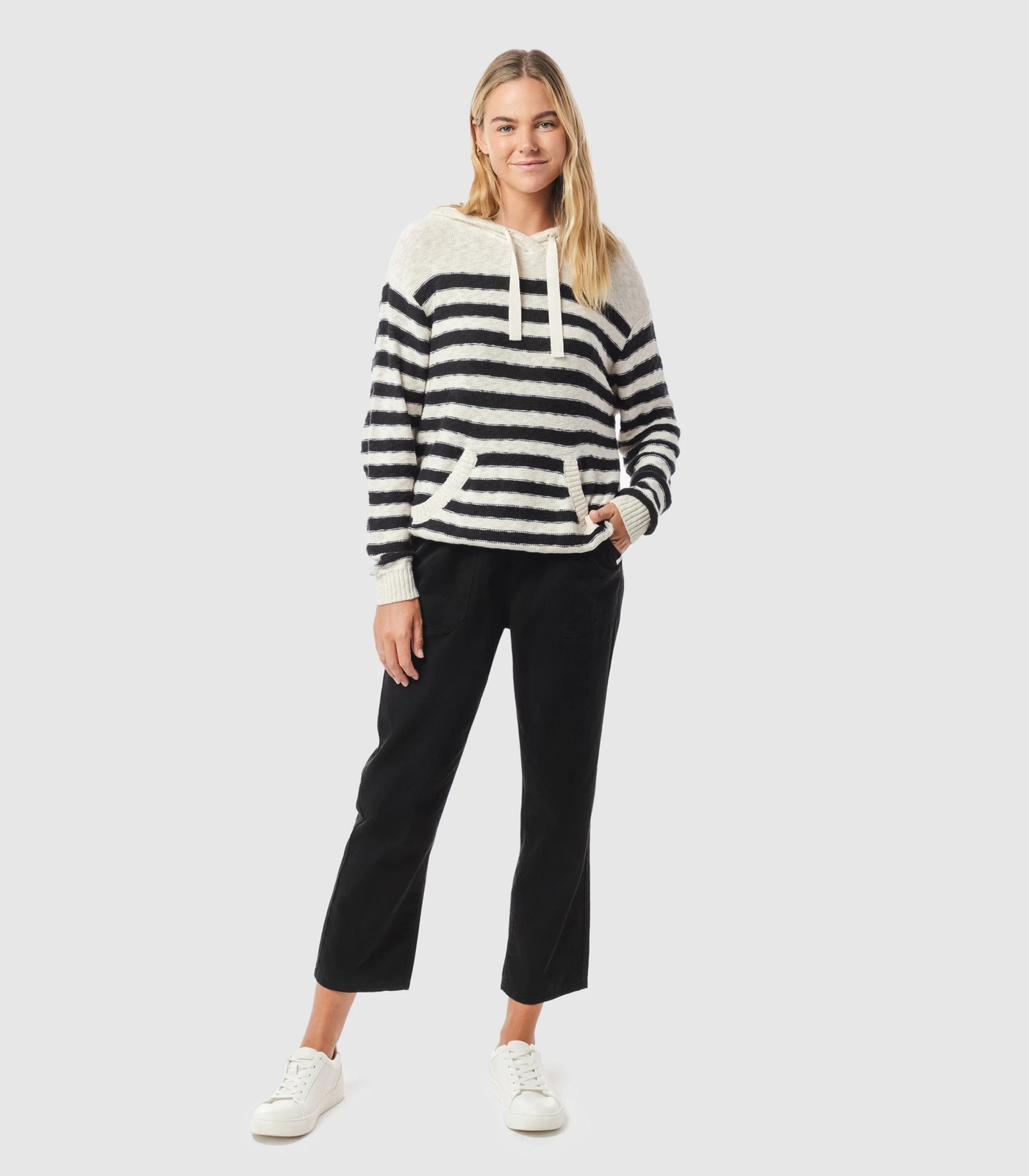 Stay warm in style with the Piping Hot Knitted Hoodie. Perfect for those chilly days, the hoodie features a classic black and white stripe design that adds a trendy touch to your outfit. The soft cotton knit fabric provides comfort, while the hood and front pocket detail offer a practical yet fashionable finish. With its regular fit and cuffed sleeves, you can easily layer up or down for any occasion. Elevate your wardrobe with the Piping Hot Knitted Hoodie and step out in style!