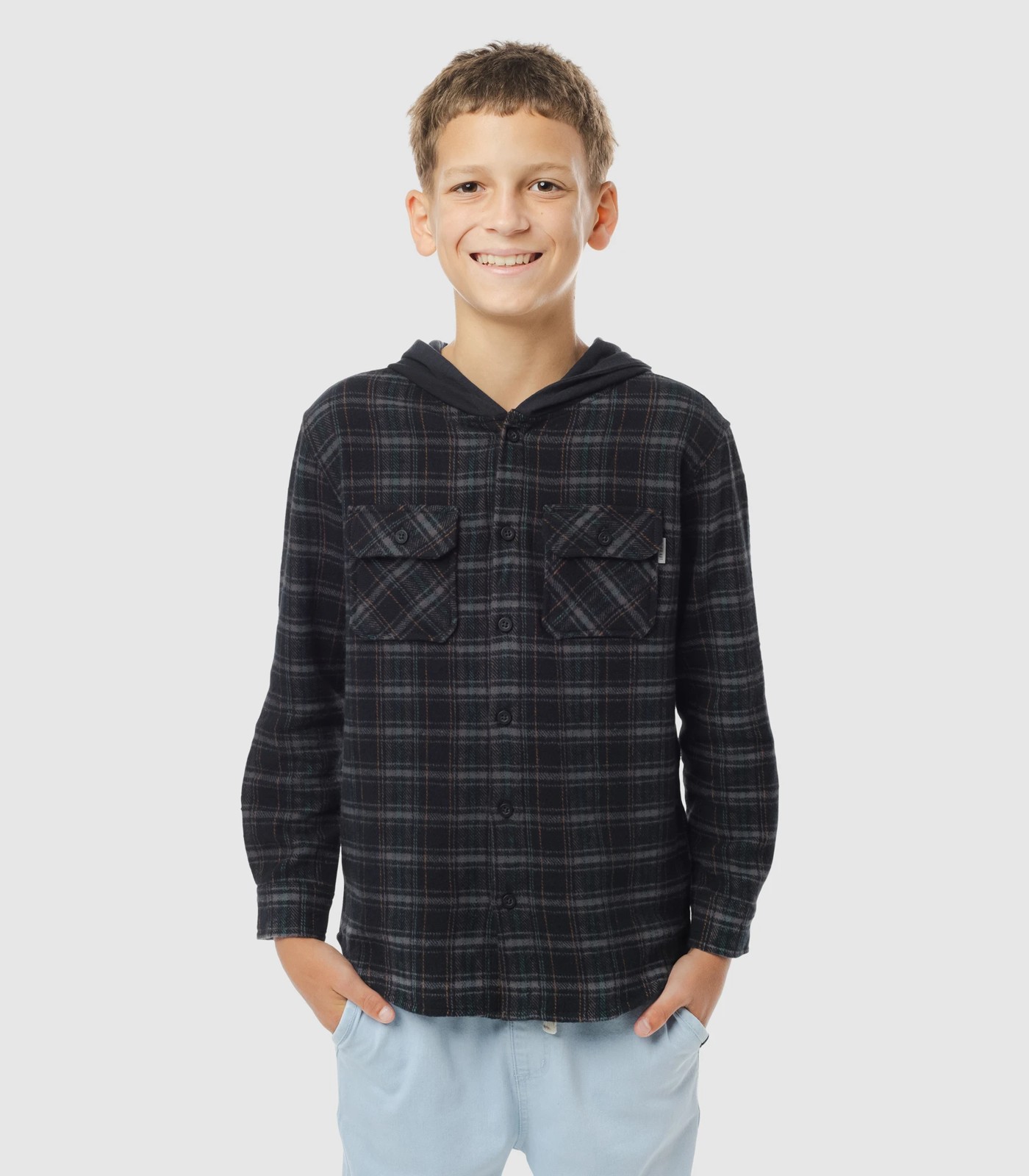 Experience comfort and style with our Piping Hot Long Sleeve Flannel Hooded Shirt. Perfect for cooler days, this shirt features a cosy hood, button-up front, and practical chest pockets. The collared neck and curved hem add a touch of charm, ensuring you look effortlessly stylish from day to night. Ready to redefine your wardrobe? Grab yours now and enjoy a perfect blend of classic design and modern fashion.