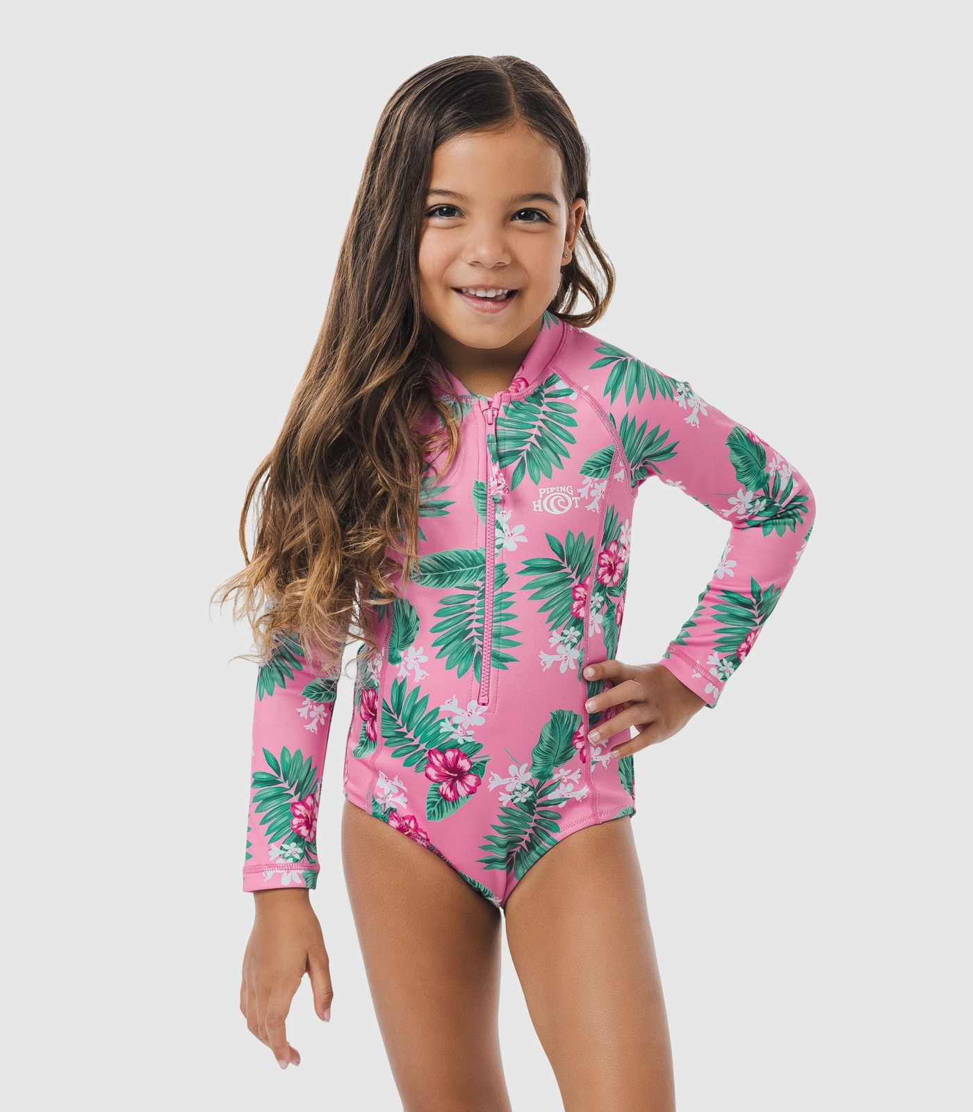Great for the beach or the pools, comes this Piping Hot floral surfsuit with excellent UPF 50+ sun protection. Includes long sleeves, a front zip through opening and unique double knit fabrication for comfort and warmth.