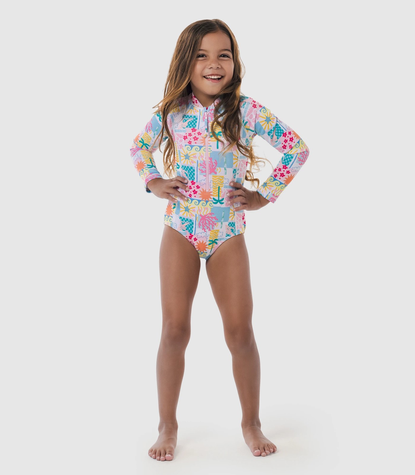Great for the beach or the pools, comes this Piping Hot tile print surfsuit with excellent UPF 50+ sun protection.