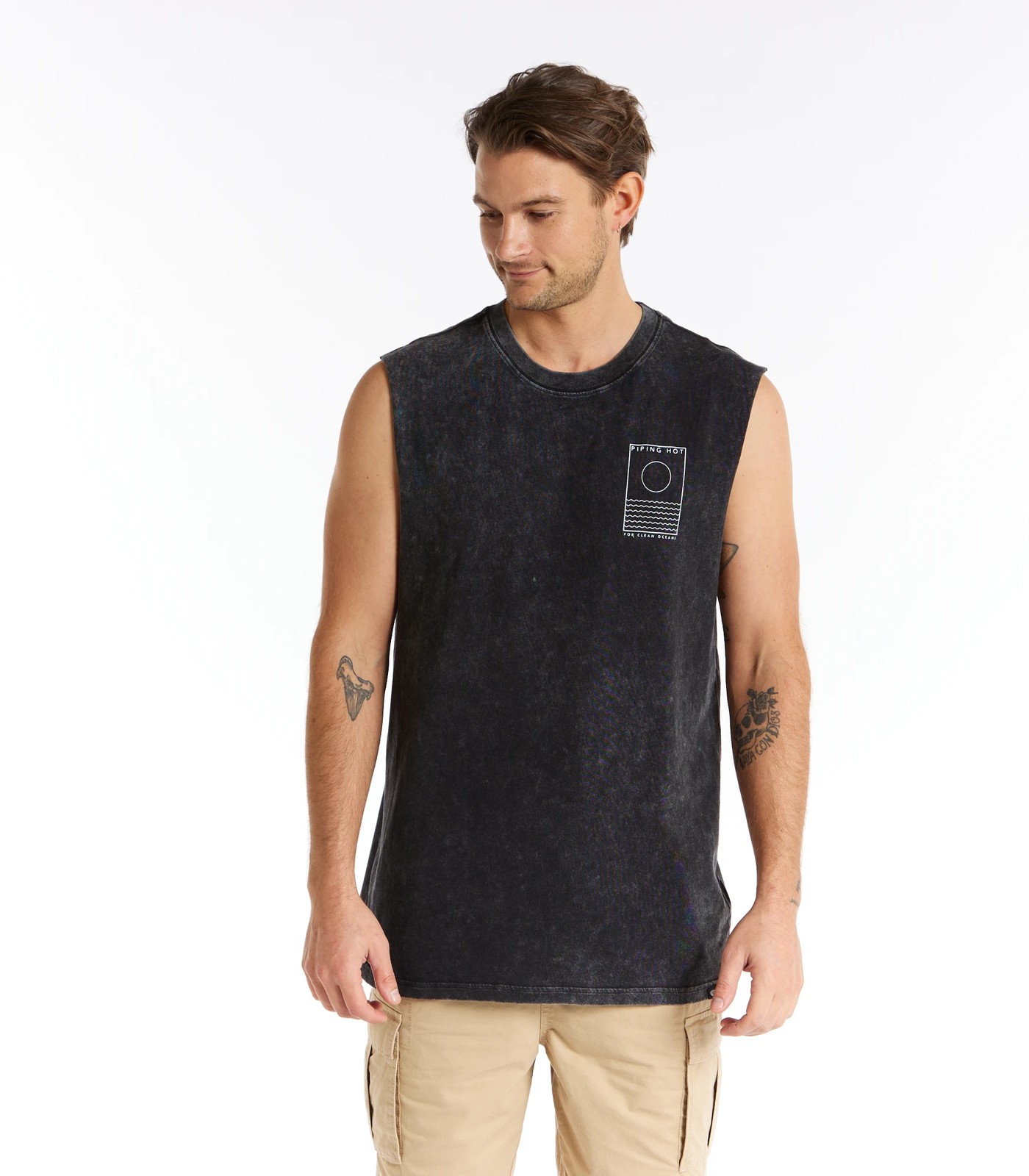 Upgrade your summer wardrobe with our Piping Hot Muscle T-Shirt. Crafted from soft and breathable recycled cotton, this tank offers ultimate comfort throughout the seasons. Featuring a stylish graphic print on the chest and back, this tee is perfect for making a statement wherever you go. The regular fit, round neckline, and straight hem add to its casual yet trendy appeal. Whether you're heading to the beach or hanging out with friends, this Piping Hot Muscle Tee will keep you looking cool and feeling confident!