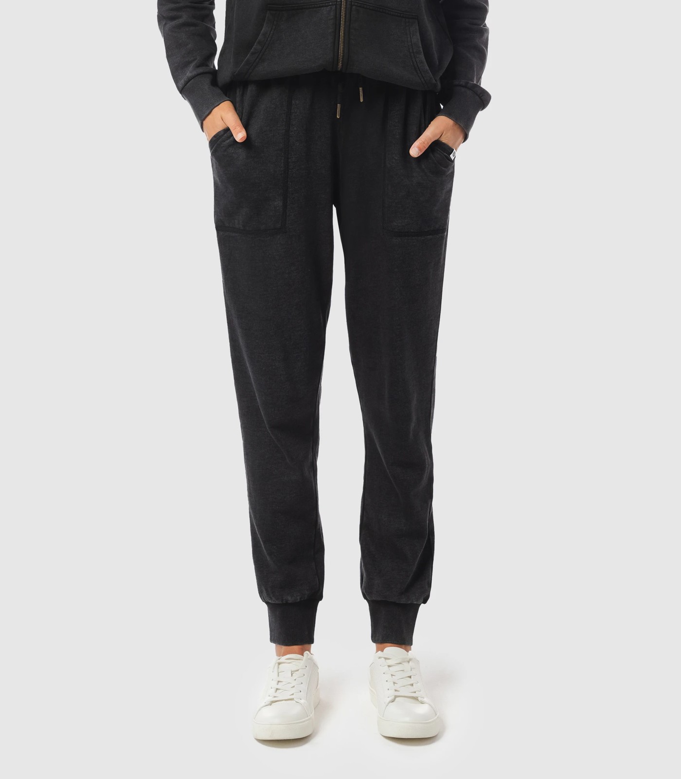 Stay comfortable and stylish in these Piping Hot Patch Pocket Trackpants. The cotton fabric ensures a comfortable fit for everyday wear. Black washed effect adds a trendy touch, while the elastic waistband with drawcord offers a personalised fit. These trackpants include side and back pockets for convenience. Complete the look with the matching hoodie. Upgrade your casual wardrobe with these versatile trackpants!