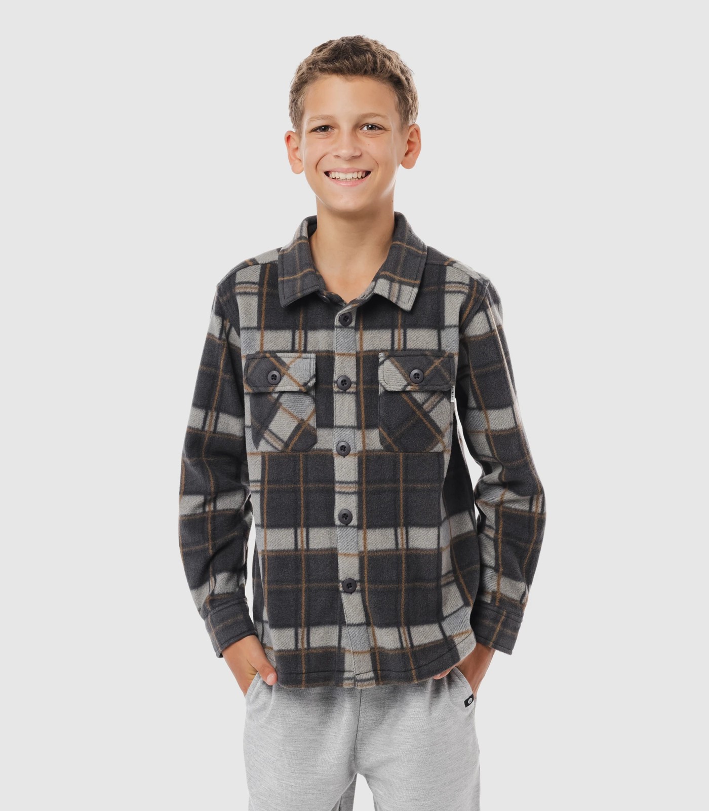 Enhance your young one’s wardrobe with our Piping Hot Polar Check Shacket. This charming shacket, designed for both comfort and style, features a classic check print that never goes out fashion. The polar fleece ensures warmth on chilly days, while the chest pockets provide a touch of practicality. Designed with a smart shirt collar and an easy button-up front, this regular-fit piece is perfect for layering and versatile wear. The curved hem adds a stylish finish. Add this shacket to the cart now and let it become your kid’s go-to piece for any outing.